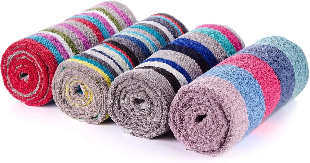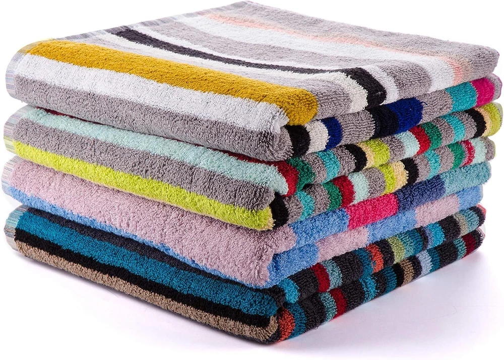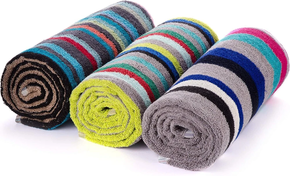 Product Description 3-Piece Bath Towel Set This set of striped bath towels adds a pop of color to any bathroom. Perfect for lovers of contemporary, retro, and fun designs. Each set features assorted stripes, and no two sets are the same. Measuring 27 x 54 inches, these towels are a convenient size for use as bath or guest towels. Machine washable and easy to care for. Lightweight & Everyday Use Made from 100% cotton for a soft feel that stays comfortable wash after wash. Oeko-Tex Certified These towels are Oeko-Tex certified, meaning they have been independently tested and are free from harmful chemicals or dyes. Great Value This set includes three bath towels and offers a budget-friendly option compared to buying towels individually. A practical choice for families, newlyweds, or housewarming gifts. Excellent value: This convenient set includes 3 generously sized bath towels. It offers excellent value for money and is a cheaper alternative to buying towels individually. This towel set also makes a great gift for families, newlyweds or housewarming parties