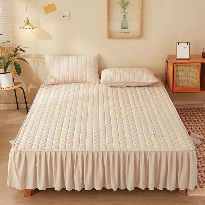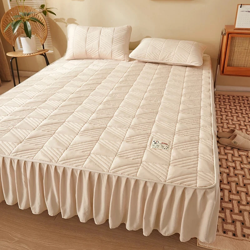 Absolutely love this mattress cover! It fits my bed perfectly, stays in place all night, and the material is so soft yet durable. The elastic edges are strong and the skirt gives it a clean, finished look. Just a heads up, pillowcases are sold separately. Highly recommend!