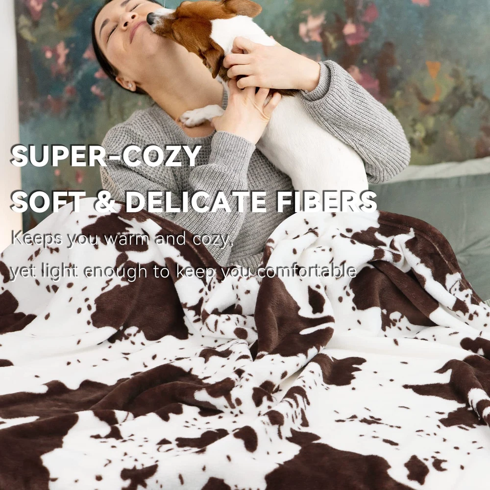 Good COW THROW BLANKET- The material of the cow fleece blanket we choose 300GSM flannel which is made from a hundred percent microfiber. The cow print blanket is lightweight, breathable, and soft for your and other family members. The cow blankets and throws offer additional warmth and comfort in bed, cow throw blanket for couch is smooth to touch. COW SOFT BLANKET- The cow print blanket could be offered as a warm bed blanket, shawl blanket for women, air-conditional blanket, plush nap blanket, cute cozy blankets for , lightweight cow blanket for traveling, camping, picnic, newborns, or pet. Cow fleece plush blanket not only protects your sofa/chair from dust and stain but also keeps you warm and cozy for a nap or movie time. COW PRINT ITEMS- You can choose the right color and size according to your needs. 40x50 in is suitable for blankets or pets blanket for cats/dogs, and great for relaxing around the house. Cow blanket 50x60 is a lightweight blanket for travel, a soft throw blanket for camping, etc. 60x80in, 90x90in, 90x108in will be warm bed blanket, cow decorations for house. COW GIFTS FOR WOMEN- Cow blankets will be nice cow gifts for cow lovers, women, and teen girls, cow themed gifts for . The fleece cow blanket throw can be put as your bedroom decor, couch decor, bed decor, home decor, car decor, etc. The cow plush warm throw provides an elegant high-end appearance. COW PRINT BLANKET- The cow print fleece throw is vacuum packed, please wash the cow print couch throws once to air dry for a period of time when you receive the cow themed throw blanket, the cow print fleece throw will become fuzzy. The cow print blankets and throws are machine washable in cold water, on a gentle or delicate cycle. The cow print soft blanket does not bleach. Cow print blanket throw is easy to and high color fastness, very easy to care for.