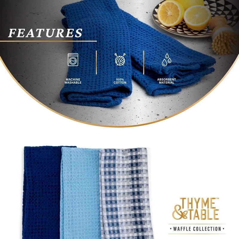 You may also like Diatomaceous Dish Drying Mat Food Safe Absorbent Rapid Drying Space Saving New 40.95 USD 43.1 USD Free shipping 5% off Kitchen Towels 4 Pack Ultra Absorbent Durable Machine Washable Crosshatch New 20.5 USD 21.58 USD Free shipping 5% off Durable Kitchen Towels 4 Pack Ultra Absorbent Machine Washable Decorative Towels 20.5 USD 21.58 USD Free shipping 5% off Ultra Absorbent Bar Mop Kitchen Towels 4*3 Pack Soft Cotton Machine Washable New 33.99 USD 35.78 USD Free shipping 5% off Yellow Rooster Decorative Dish Drying Mat Kitchen Water Absorbent Foam 14x21 New 26.33 USD 27.72 USD Free shipping 5% off Cotton Waffle Kitchen Towels, Blue White, 3-Piece Set is a part of 's Waffle Collection. These kitchen towels are soft and durable and are made of 100% absorbent waffle cotton material. The cotton towels are machine washable and will be long lasting. The towels measure 28" x 16". With a waffle texture, these towels are stylish and functional. Care and use: wash separately before first use with like colors. Use mild detergant and tumble dry low. Do not bleach. Warm iron if needed. 100% Cotton Machine Washable Long-Lasting Material