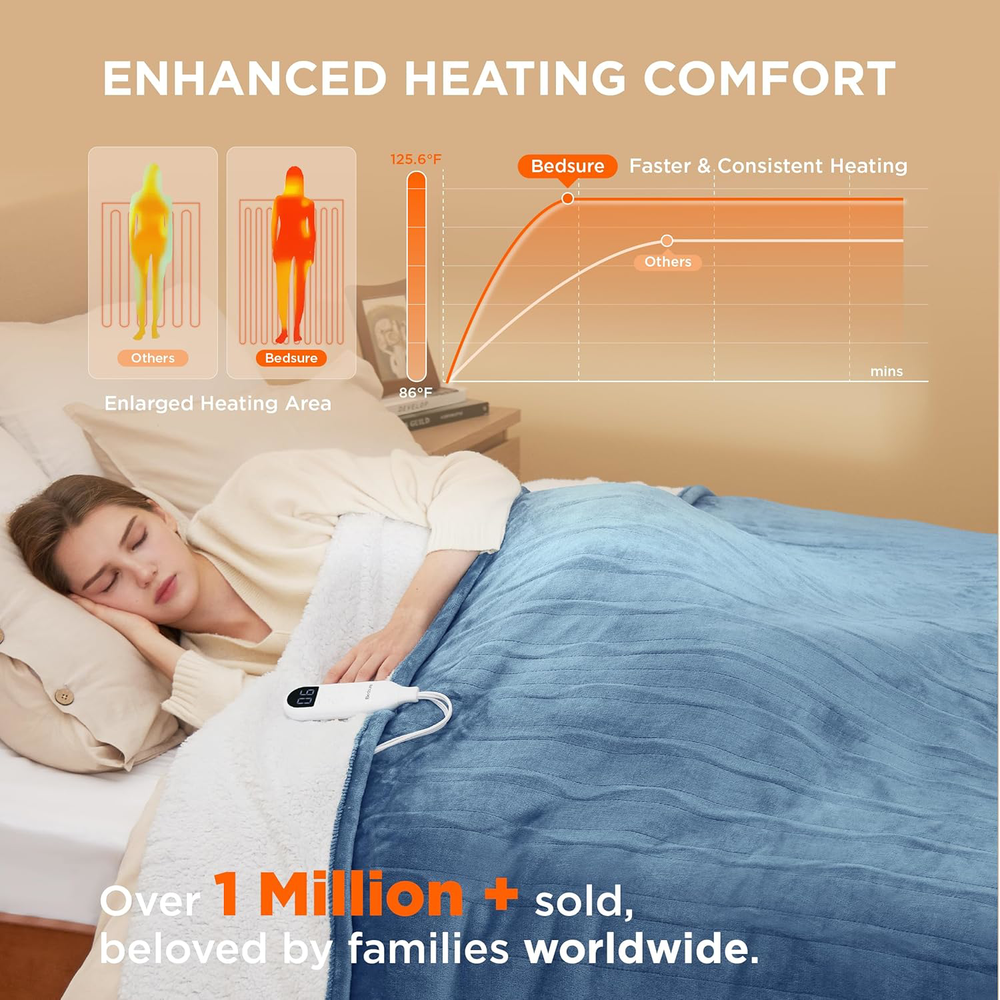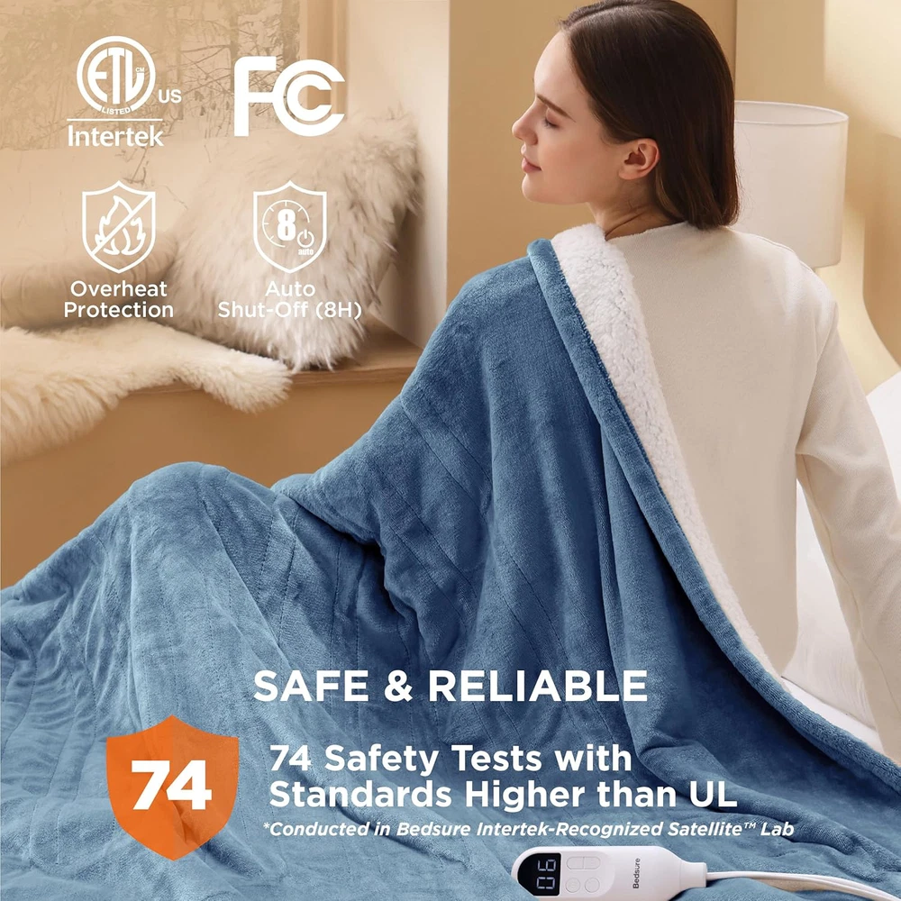 Fast Shipping Great Customer Support Satisfaction Guaranteed DESCRIPTION Shipping Shipping Shipping All domestic packages are shipped for Free (Unless other shipping method was selected during the checkout) Most items ship and arrive much sooner than the estimate delivery date. Usually within 2-3 days from payment. However, we have longer estimates to compensate for the occasional delay or supply chain breakdown. We do not accept P.O. BOXES - PLEASE PROVIDE A PHYSICAL ADDRESS Return Return Return In the event that you would like to return your purchase, we allow returns that are processed within the defined return date (the return date is to be found in the return policy/shipping and handling section) Please contact us for a return authorization and the return shipping address. Payment Payment Payment PayPal is our preferred method of payments it's the quickest, easiest and most secure way to pay for your goods or services online. PayPal offers buyer and seller protection should there be a problem. If you do not have a PayPal account, to get started and buy your first item with us is very easy. Simply click on the 'Buy It Now' button and follow the eBay checkout steps. Select PayPal as the payment method you then will be given the chance to enter your card details in to PayPal's secure checkout in order to pay for your order. Once the payment has been made, you will then be given the opportunity to make your own PayPal account to make paying for your items in the future very easy. Should there be a problem with payment please do let us know. Feedback Feedback Feedback Customer satisfaction is very important to us. If you have any problem with your order,please contact us and we will do our best to make you satisfied, please do not leave a negative feedback before we resolve your problem. We guarantee that your issue will be solved quickly. As long as you are happy with your purchase of , please leave us a positive feedback. Your feedback is very important to us it affects our search placement on eBay. We will leave a positive feedback for you in return automatically once we receive your feedback. Contact Us Contact Us Contact Us If you have any queries, please contact us via ebay. We usually respond within 24 hours on weekdays. Thank you for visiting our ebay store! Softness & Enhanced Durability: The 220 GSM flannel top and the 200 GSM premium sherpa both provide an exceptionally soft touch on each side. Neat stitching ensures stronger seams and enhanced durability. It is machine washable and uses a unique dyeing technique to prevent fading Customizable Warmth: Featuring fast and consistent heating, this heated blanket twin offers 6 heating levels and 10 time-settings for customizable coziness. Powered by advanced heating wire technology, it can precisely control temperature, ensuring safer warmth Versatile: Enjoy the extra warmth you need with this twin electric blanket while watching a movie on the sofa, adding it to your bed for a good night’s sleep, or using it as a regular blanket Safer & More Reliable: Conducted in Bedsure Intertek-Recognized Satellite Lab, 74 safety tests with standards surpassing UL ensure safer performance. This electric blanket twin is ETL and FCC certified, and its default 8-hour auto shut-off prevents it from overheating so that you can enjoy warmth with complete peace of mind Giftable: This heating blanket adds a stylish touch to your decor. It is available in multiple colors and sizes, making it the perfect gift for special occasions Energy-Saving: Designed for standard 120V AC wall outlets at 60Hz, our electric blanket has a power rating of 110W, consuming about one-thirtieth the energy of traditional heaters. Enjoy cozy warmth while saving on electricity costs Heated Twin Electric Blanket - Soft Flannel, 10 Timed Settings, 62x84 inches Click here to see description Fast Shipping Great Customer Support Satisfaction Guaranteed DESCRIPTION Shipping All domestic packages are shipped for Free (Unless other shipping method was selected during the checkout) We ship within two business days of payment, usually sooner Standard FREE shipping takes between 3-5 business days Expedited shipping takes between 2-3 business days Overnight shipping takes between 1-2 business days We do not accept P.O. BOXES - PLEASE PROVIDE A PHYSICAL ADDRESS We Ship Globally using ebay's GSP, the item is sent to a logistic center in KY and shipped from there to the rest of the world. International customers are responsible for all duties and taxes Contact your local authority for questions related to the amount of duties or taxes you will be responsible for Return In the event that you would like to return your purchase, we allow returns that are processed within the defined return date (the return date is to be found in the return policy/shipping and handling section) Please contact us for a return authorization and the return shipping address. Please contact us for a Return Merchandise Authorization (RMA) number. We advise you to use a reputable carrier service when returning your goods. Please pack all returns appropriately. We ship globally Via eBay's global shipping program (GSP). Thus we don't cover returns for items shipped globally. Buyers returning such items will be refunded ONLY for the item's cost and not for the shipping. please check the Voltage information and make sure it matches the one in your country. In case it's not stated in the description, do ask us. Payment PayPal is our preferred method of payments it's the quickest, easiest and most secure way to pay for your goods or services online. PayPal offers buyer and seller protection should there be a problem. If you do not have a PayPal account, to get started and buy your first item with us is very easy. Simply click on the 'Buy It Now' button and follow the eBay checkout steps. Select PayPal as the payment method you then will be given the chance to enter your card details in to PayPal's secure checkout in order 