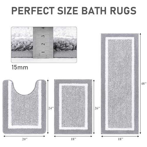 Return Policy Fast Delivery Trusted seller Bathroom Rug Set 3 Piece, Non-Slip Absorbent Bath Mats, Microfiber Soft, Absorbent Plush Shaggy Carpets Includes U-Shaped Toilet Mat for Bath Floor, Shower, Light Grey Product Description Ultra Soft Bathroom Rugs Sets: microfiber shaggy bathroom floor mats are made of high-quality microfiber material, which provides a soft and comfortable massage feeling for your feet Extra Absorbent Bath Mats: These upgraded luxury bathroom rugs sets are made of microfiber, and the moisture is trapped in the deep pile of the mat. Non-Slip Bath Mat: The newer version of TPR adhesive makes the 3 pieces bathroom rugs sets more durable, can maintain the new appearance year after year, and can firmly grasp the ground. Machine Washable Bath Rugs: This non slip bathroom floor mat uses high-quality fiber locking technology. It has been tested for multiple machine washes and can withstand frequent machine washes. Multi Purpose: bathroom floor mats (18"x26"+18"x48"+U20"x24") are the perfect choice for bathrooms, washrooms, bedrooms, living rooms, spas, and wver you need bathroom floor mats. Shipping Returns Payment Shipping Shipping is FREE to all addresses other than APO/PO boxes in the lower 48 states. All our stock ships from US-based warehouses. Shipped via USPS or UPS (depending on location and package weight) Unless stated otherwise, all orders will ship within 24-72 hours of your payment being processed. Check our feedback to see the great reviews of FAST shipping we offer. Returns Seller does not accept returns Payment We currently accept payment via eBay managed payments only. Once payment is cleared, we will dispatch your shipment within 1-3 business days. Please refer to the "Shipping" tab for more information regarding shipping speed to your destination.