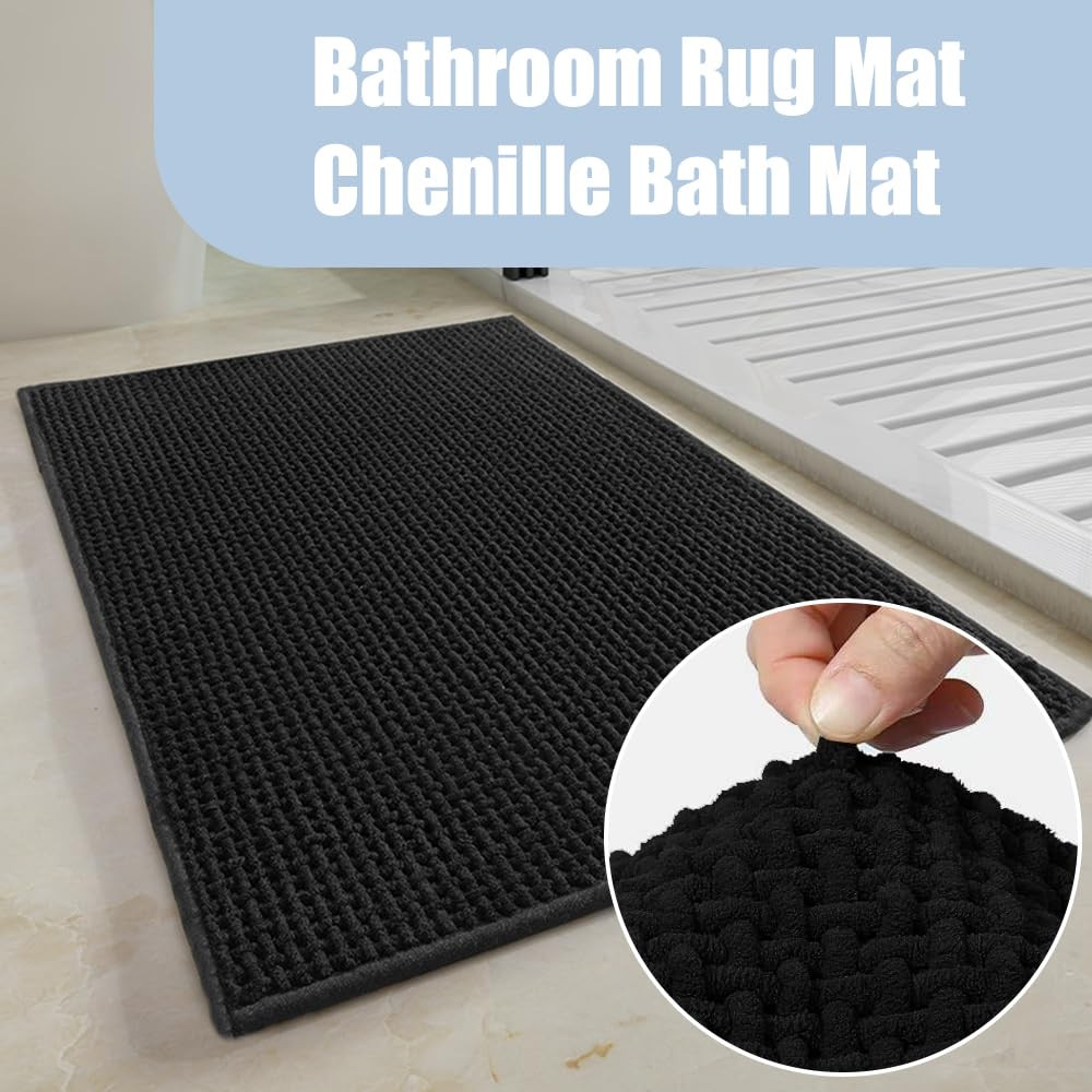 Soft Non-Slip Chenille Bathroom Rug Mat with Absorbent Rubber Backing