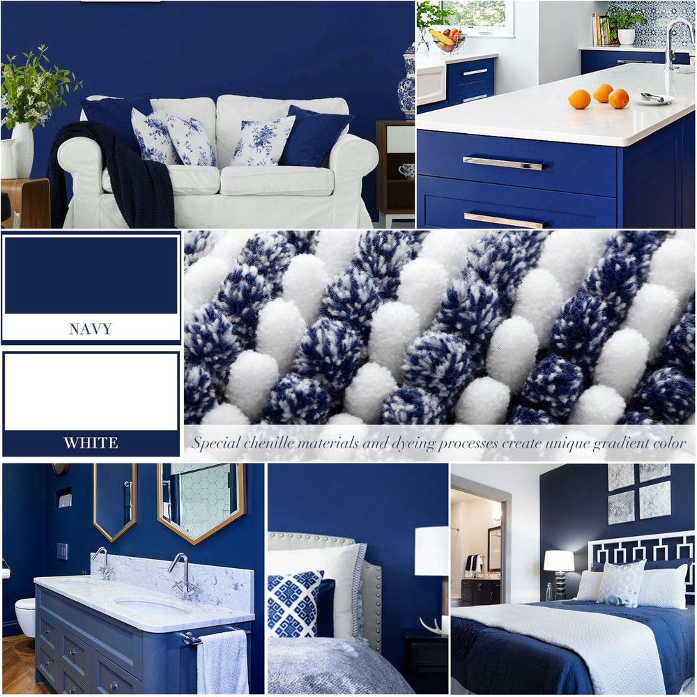 Chenille Bathroom Rugs and Runner Mats Set of 2 for Bathroom Floor You always need a soft, warm, dry place to relax your feet after you step out of a refreshing shower, 's bathroom rugs are ultra-soft and absorbent to give your feet the gift of exceptional comfort. Our bath mat set made of 100% plush chenille, the fibers dense and not easily turn deflated after use, non-slip material provides long-lasting and durability performance, super-absorbency pile keeps your floor dry. What's more, the unique gradient pattern design leads a beautiful, rich and charming element to your bathroom and home. Extra Soft Chenille : Luxury chenille microfibers, bring you comfortable feeling to the touch like walking on the cloud. Warm and soft thick pile offers a good way to soothe tired feet. Super Absorbent : The soft chenille bathroom mat is pretty comfortable to touch, super-absorbent performance can quickly soaks up an impressive amount of water and dry quickly. Non Slip Backing : High quality hot melt adhesive backing to keep the bath mat firmly in place and prevent shifting and skidding. Machine Washable : the bath rugs is made with premium fiber locking technology so that every fiber is firmly attached onto the backing to prevent shedding during frequent machine washing. Colours & Sizes Variants : Unique gradient pattern design, a bunch of colors for individual needs, these bath rug set is easily coordinate with bathrooms or any different styles. Perfect Chenille Bathroom Rug Set : With different colors and sizes to choose from, can be used at bathroom, shower, vanity, tub, bedroom, front of sink or other place in your home. 【PREMIUM CHEILLE BATH MAT SET】: You will get 20"x 47" & 16"x24" bathroom rug sets, which are made of high quality fluffy plush chenille microfibers. The soft fibers are very dense and not easily turn deflated after use, soothing your tired feet and shielding your toes from the cold floor. The density and plushness of our pile surpass that of most other brands. 【EXTRA ABSORBENT BATHROOM RUG】: The luxury performance chenille microfibers can quickly absorb moisture from your feet when you step out of the bath or shower, and save your floors from dripping water, and dries quickly, making your feet feel the ultimate luxury enjoyment 【NON-SLIP/BREATHABLE】: High quality hot melt adhesive backing to keep the carpet firmly in place and prevent shifting and skidding. Provide better security for families with children or the elder. Attention: The bath rug underlay should be clean, flat, and dry before placing the mat on the floor. Water or dust under mat may cause slippage. 【MULTI-PURPOSE USE】: The gradient color design for this shaggy bathroom rug set is beautiful, make it easy to go with any bathroom home decor, bring charming and fantastic feeling for your family, multiple sizes are essential for any style spaces, it can be applied in bathroom, kitchen, bedroom, living room, door entrances, stairs, balcony, laundry room, pet house, pet rug, and more. 【MACHINE WASHABLE BATH RUGS】: Durable material, machine washable, With premium fiber locking technology, every fiber is firmly attached onto the backing so that the bathroom mat will not shed during using or washing, color will stay nice and vibrant for years to come no matter how many times be washed and dried. Machine wash with cold water and mild detergent (no chlorine or bleach) tumble dry at low speed or hang dry.