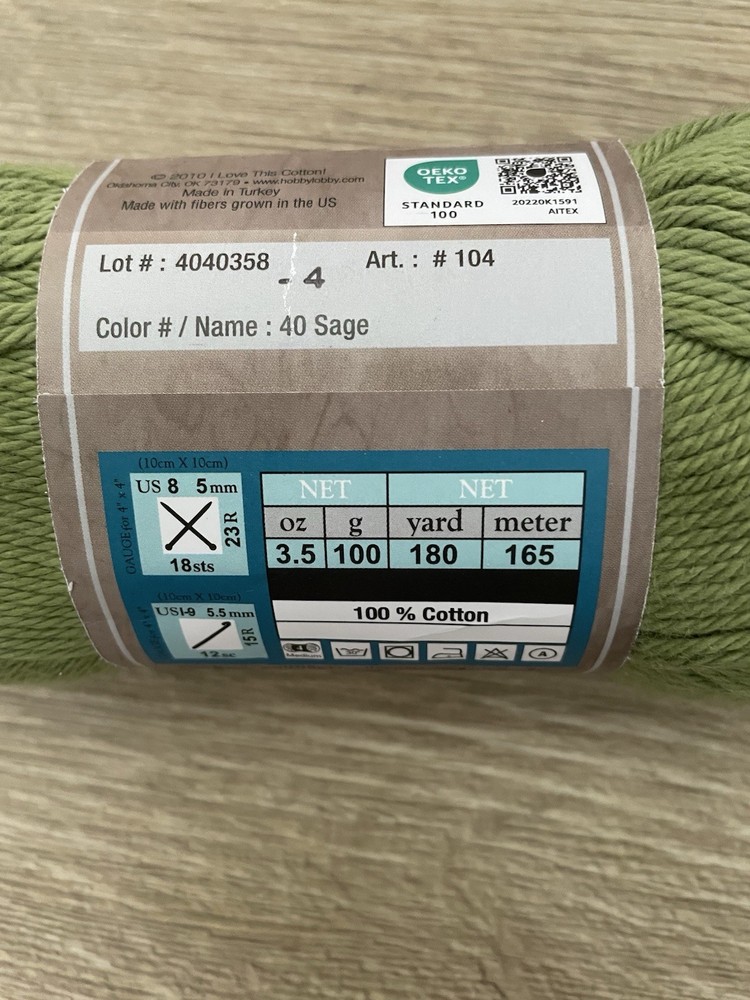 This yarn is amazing! The sage color is so pretty, and it’s incredibly soft—perfect for cozy scarves and lightweight wearables. Works up beautifully with recommended needles or hooks, and the drape is just right. Great value for such quality cotton yarn—definitely stocking up on more!