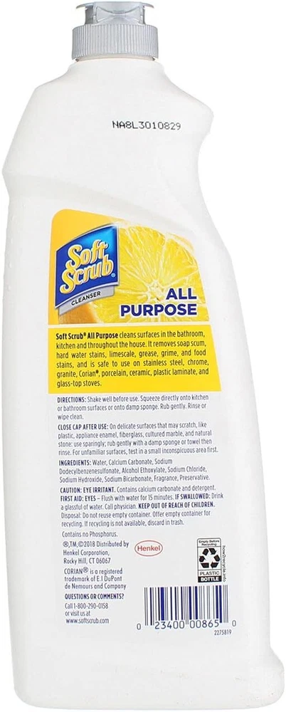 Soft Scrub Lemon Scent Heavy Duty Cleaner 24 oz. Cream - Case of: 1