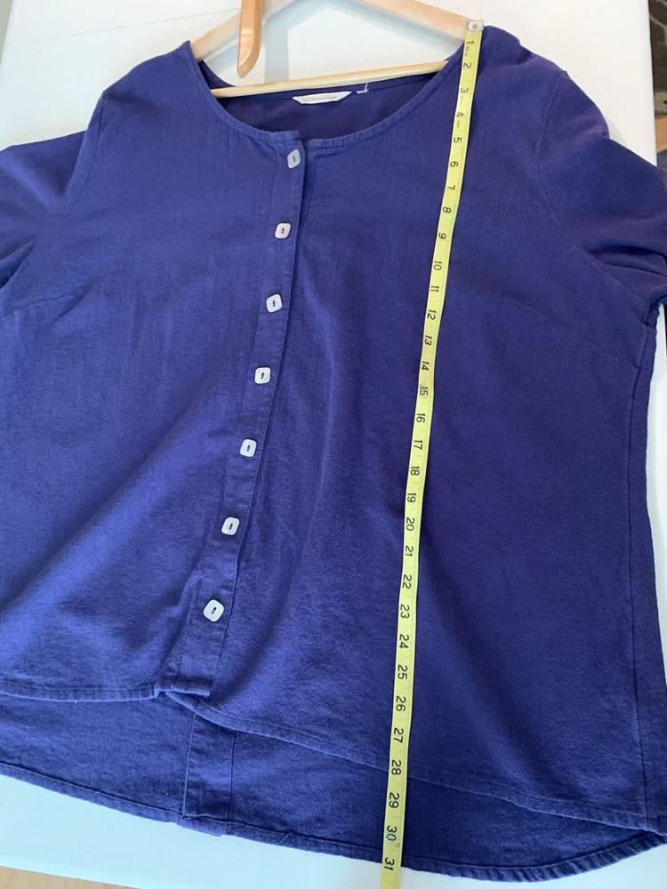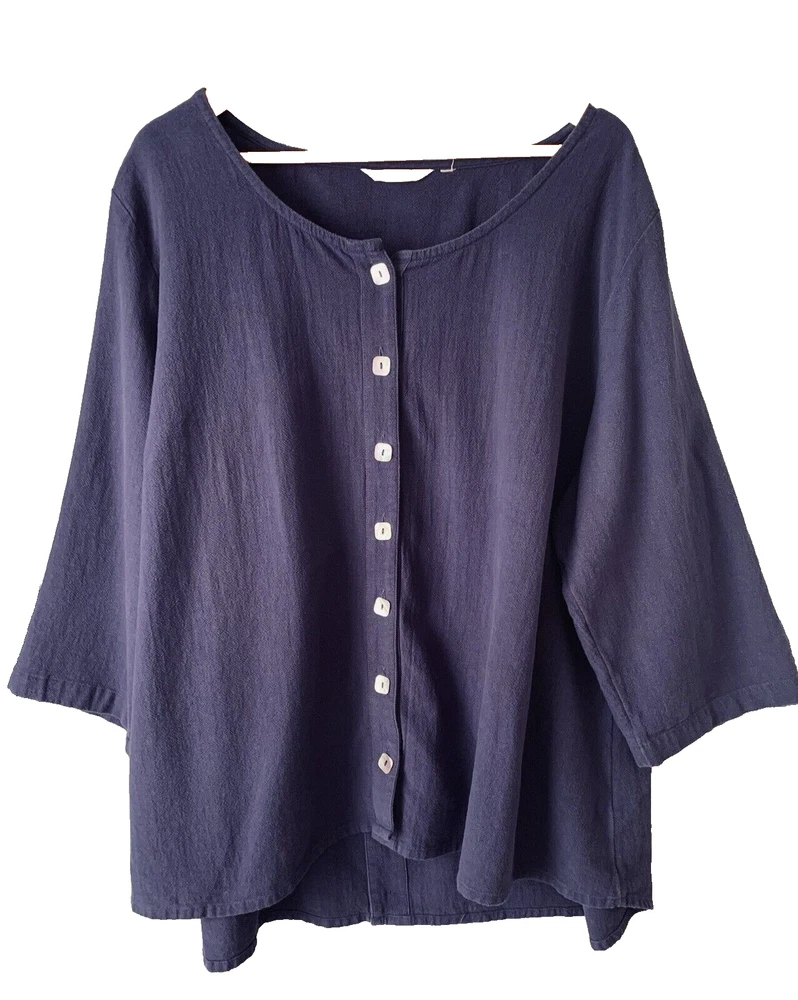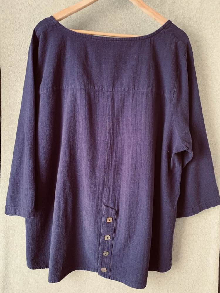 Soft Surroundings Blue Button Front Tunic Top Sz 3X Lagenlook Artsy Casual allover wash-wear (fading). missing size tag- see pics for measurements.