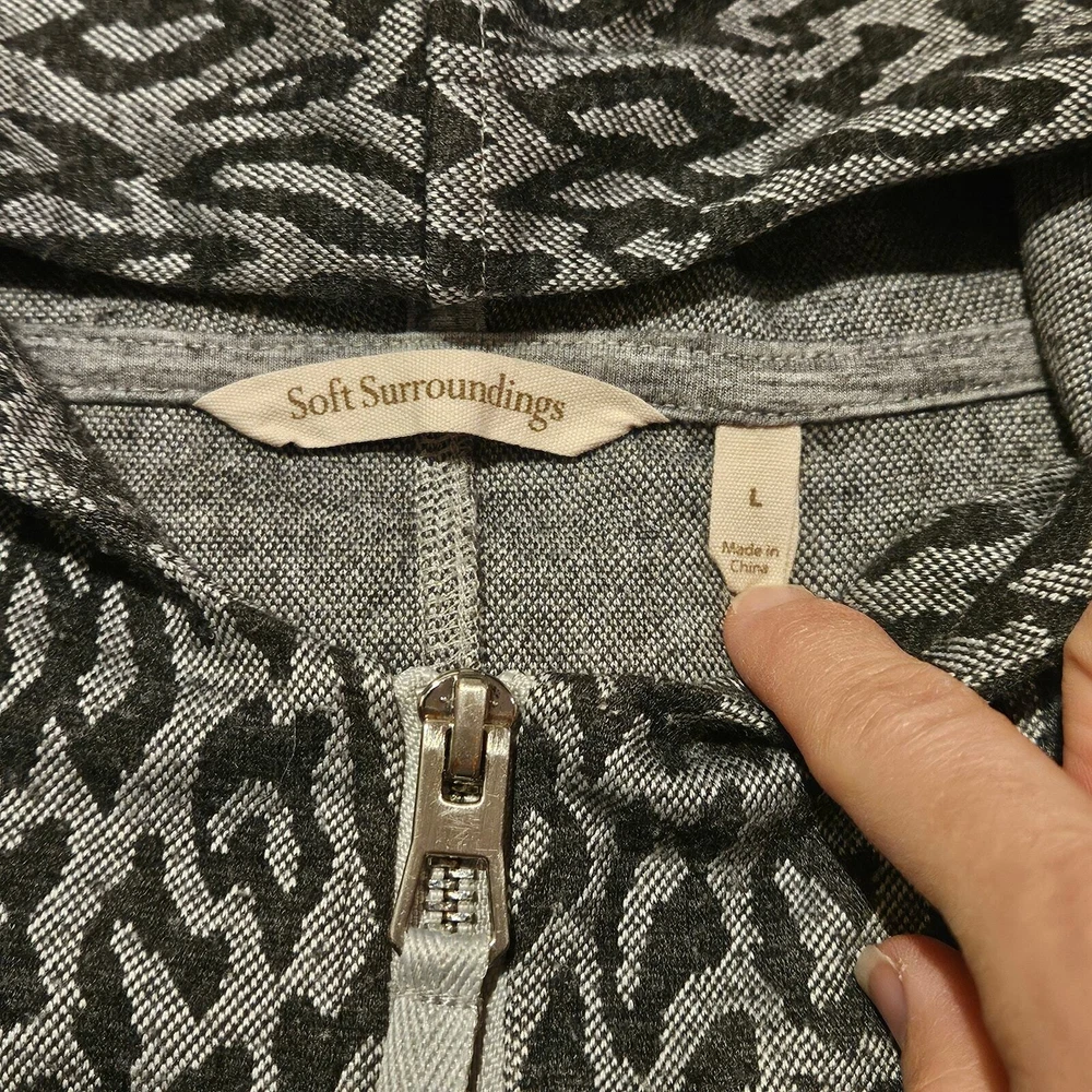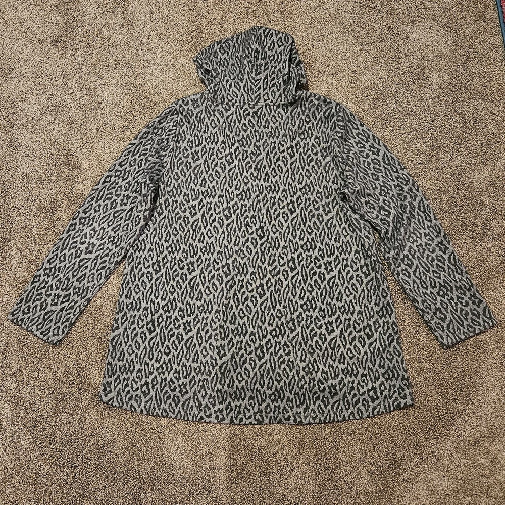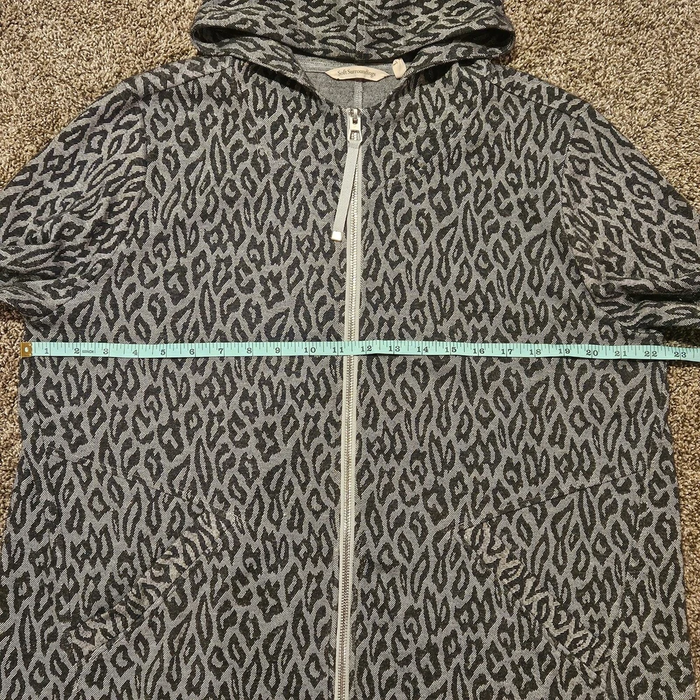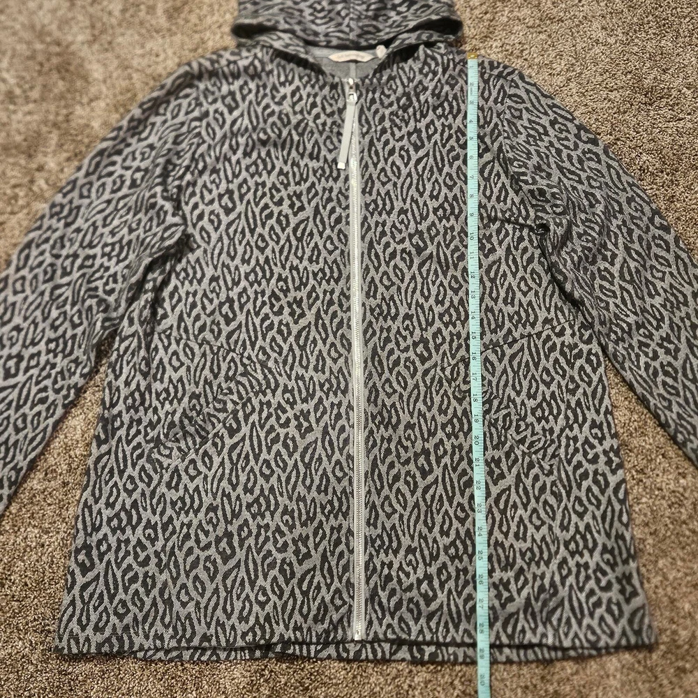 Soft Surroundings Hoodie Women Size L Lyra Leopard Hooded Zip Front Jacket Gray Measurements are included in the photos Material: 78% Polyester/17% Viscose/5% Spandex Color: Gray Multi Animal print Excellent Pre-Owned Condition. Very slight signs of wear and washing Bundle for a discount or send an offer