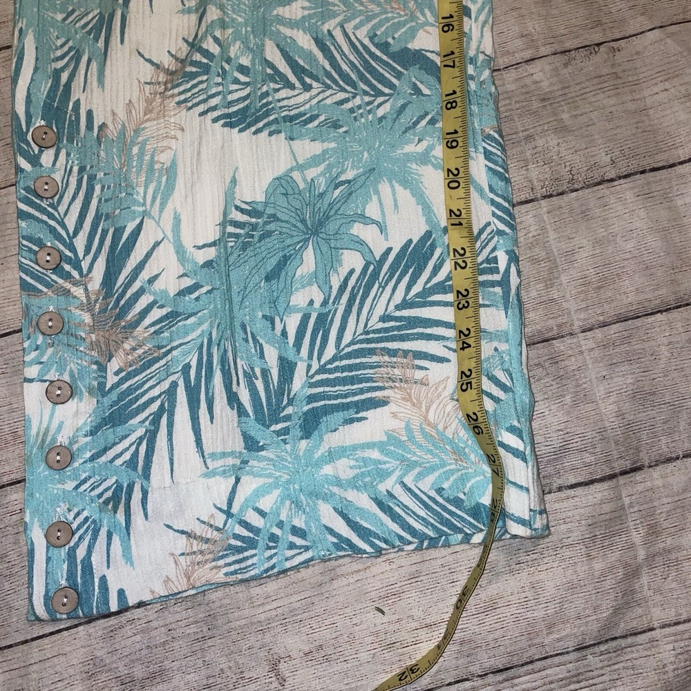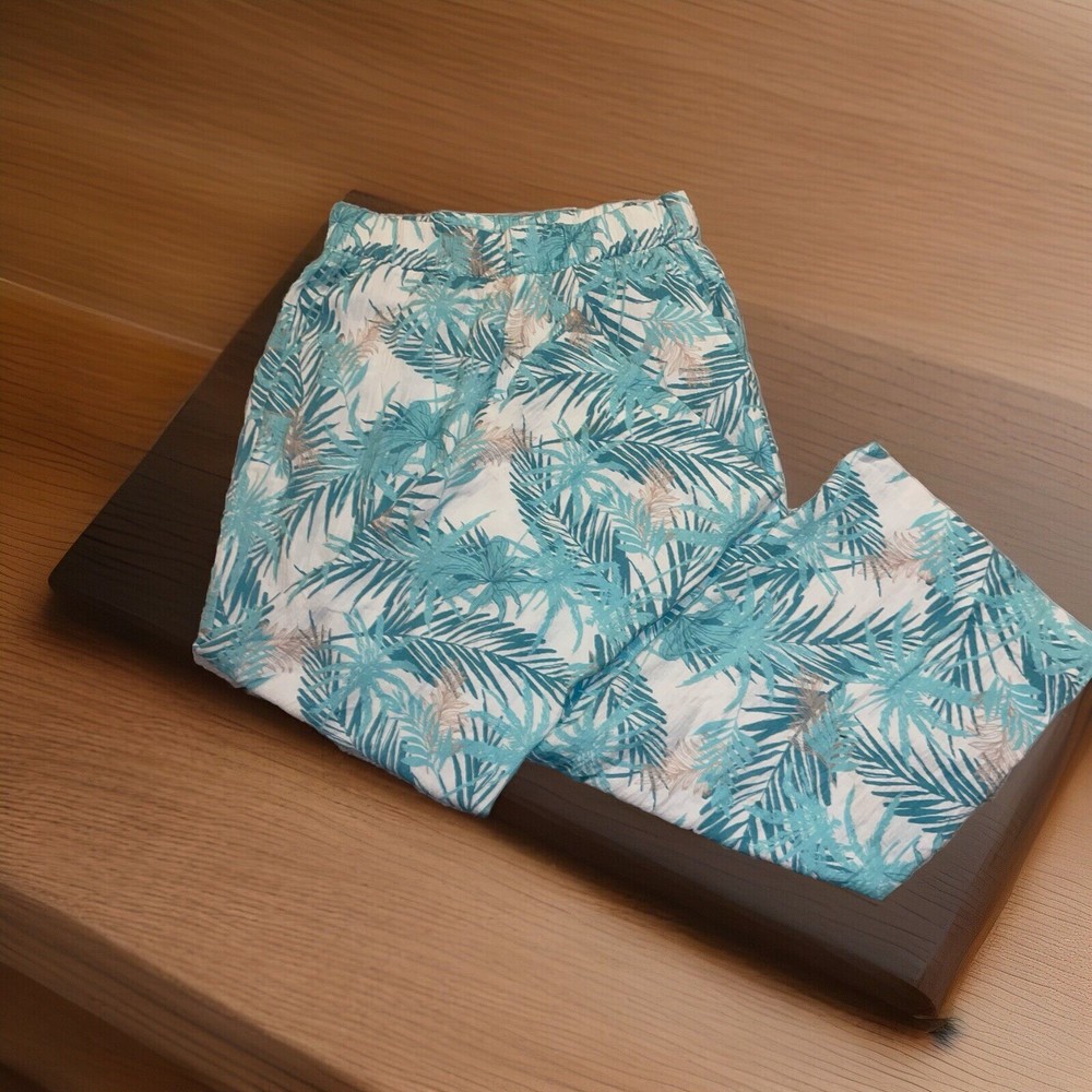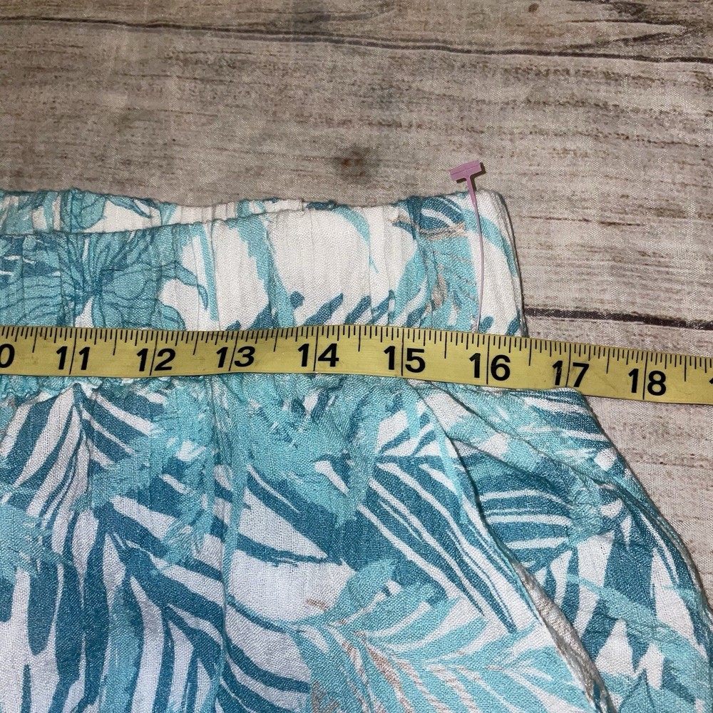 Soft Surroundings Medium Blue Palm Tree Linen Wide Leg Pants J1