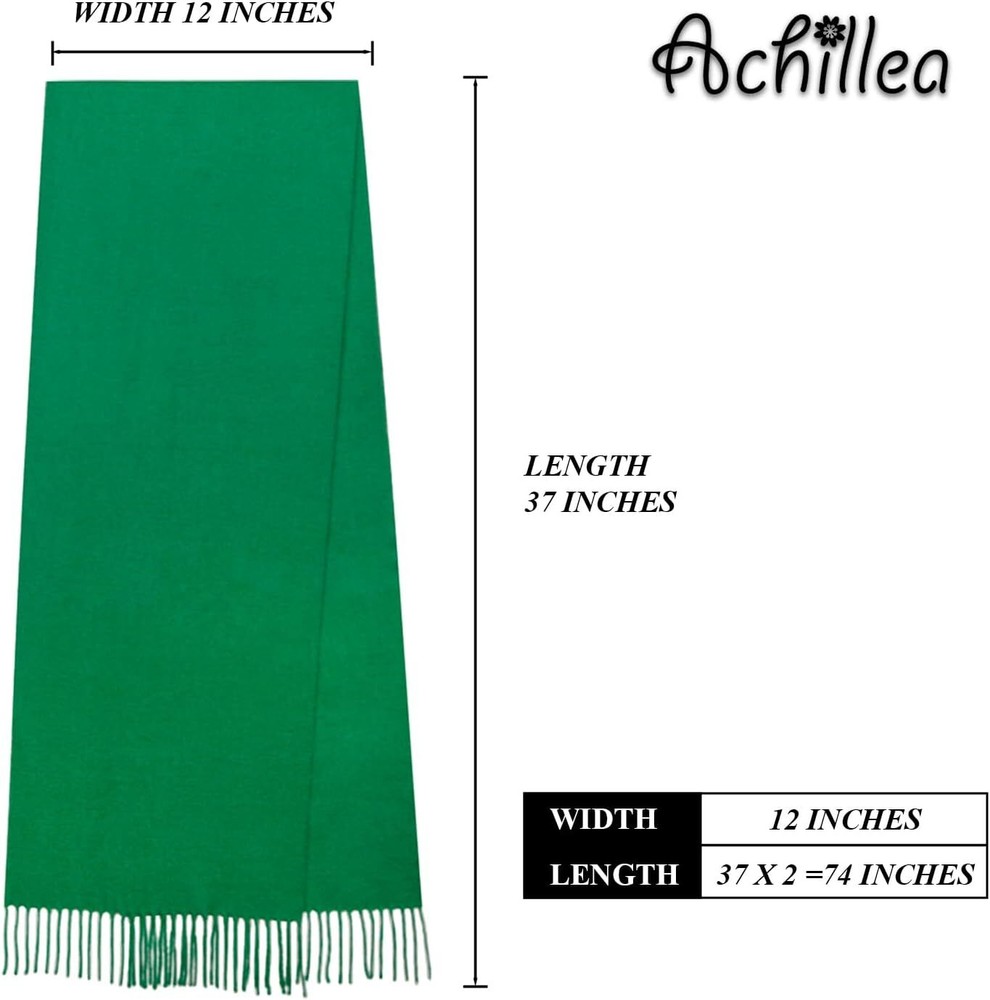 Achillea Soft & Warm Solid/Plaid Color Cashmere Feel Winter Scarf Kelly Green Product Details Is Discontinued By Manufacturer : No Product Dimensions : 66 x 12 x 0.2 inches; 6.08 Ounces Department : womens