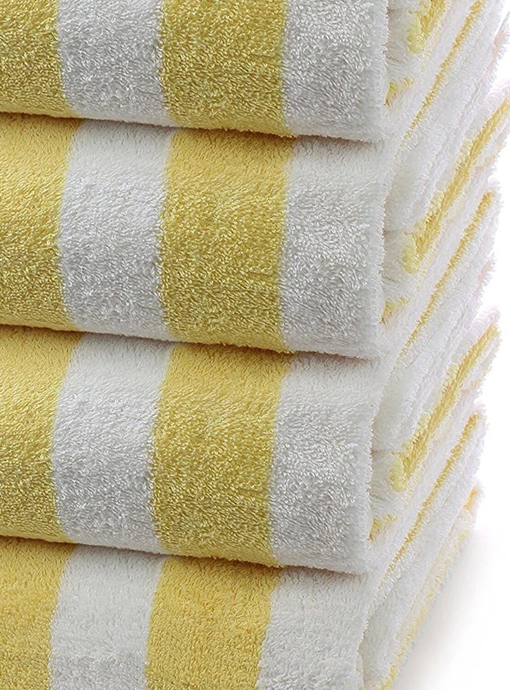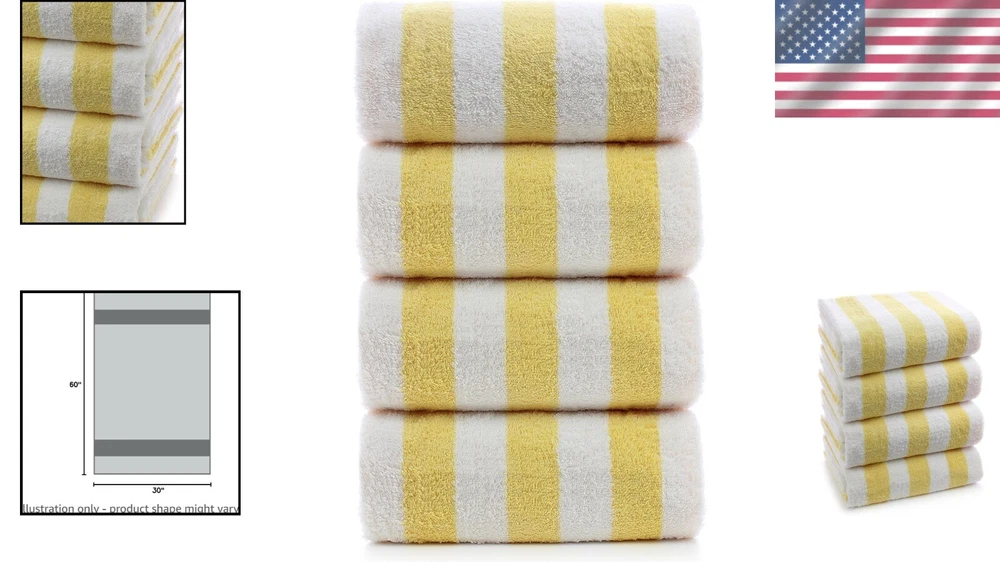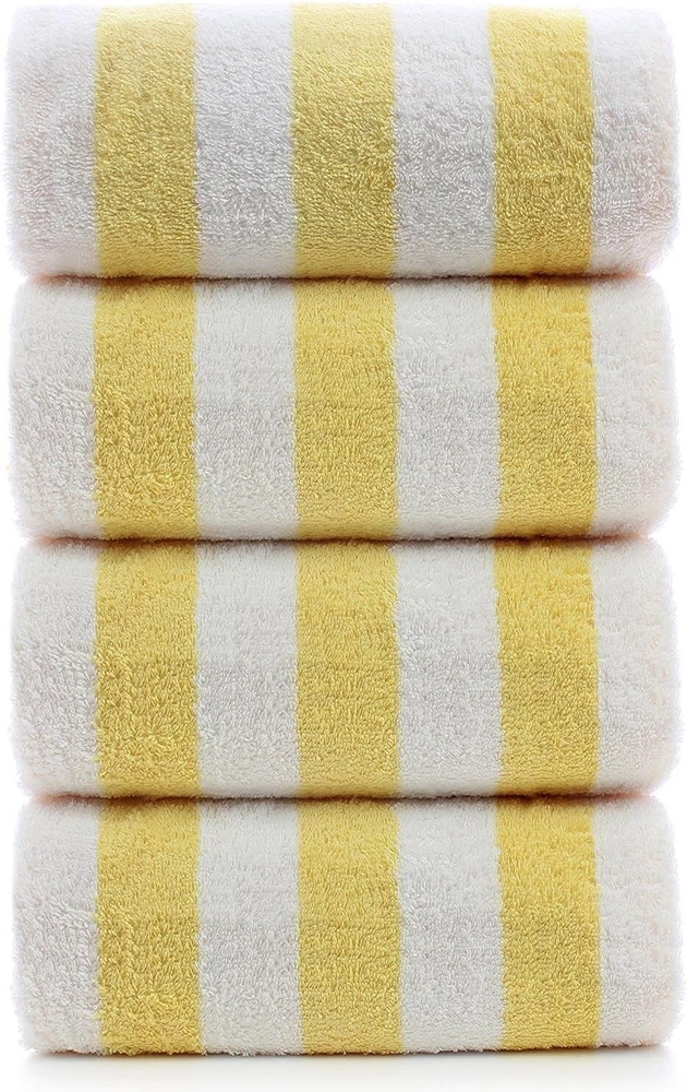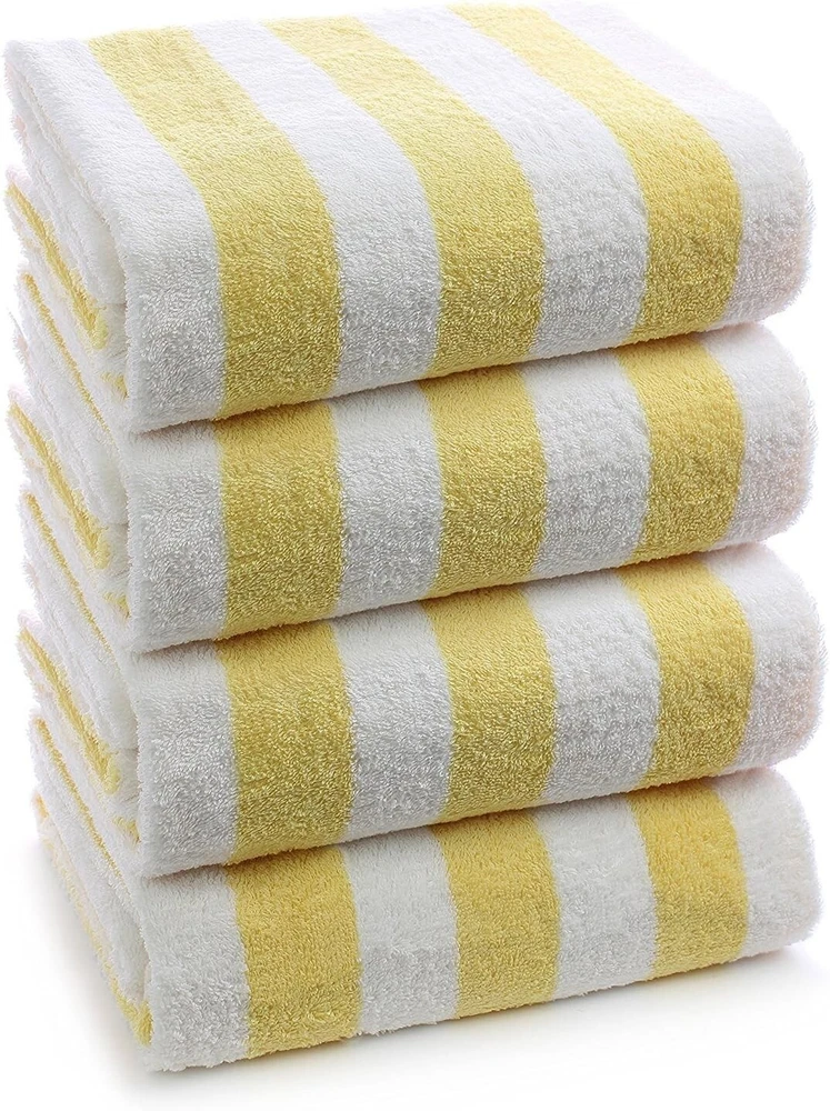 Softness: Soft Occasion: Beach, Pool Set Includes: Beach Towel GSM (Grams per Square Meter): 600-900 GSM Type: Beach Towel Product Dimensions: 60"l X 30"w Item Weight: 4.94 Pounds Shape: Rectangle UPC: Does not apply Target Audience: People Who Visit The Beach Or Pool Size: 30 in x 60 in Unit Count: 1.0 Count Age Range (description): All Ages Fabric Type: Cotton Weave Type: Basket Weave Product Care Instructions: Machine Wash gtin13: Does not apply Towel Form Type: Beach Towel Pattern: Striped Theme: Beach Number Of Items: 4 Room: Any Room, Bathroom, Dining Room, Guestroom, Kitchen, Living Room, Patio Number of Items in Set: Four-Piece Material: 100% Cotton, 100% Turkish Cotton, Cotton Department: Adults, All Ages Personalize: No Special Feature: Durable Color: Yellow Brand: Unbranded Care Instructions: Machine Wash Features: Durable Package Type: Standard Packaging