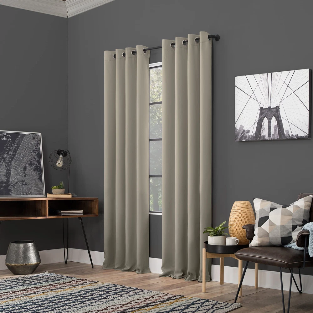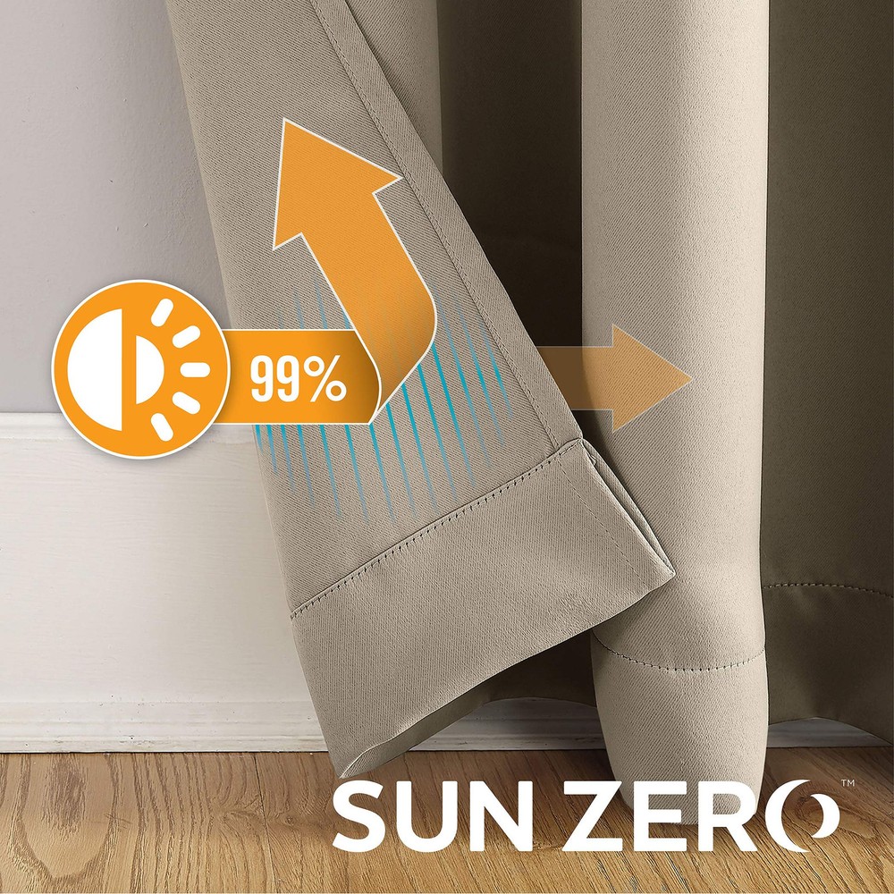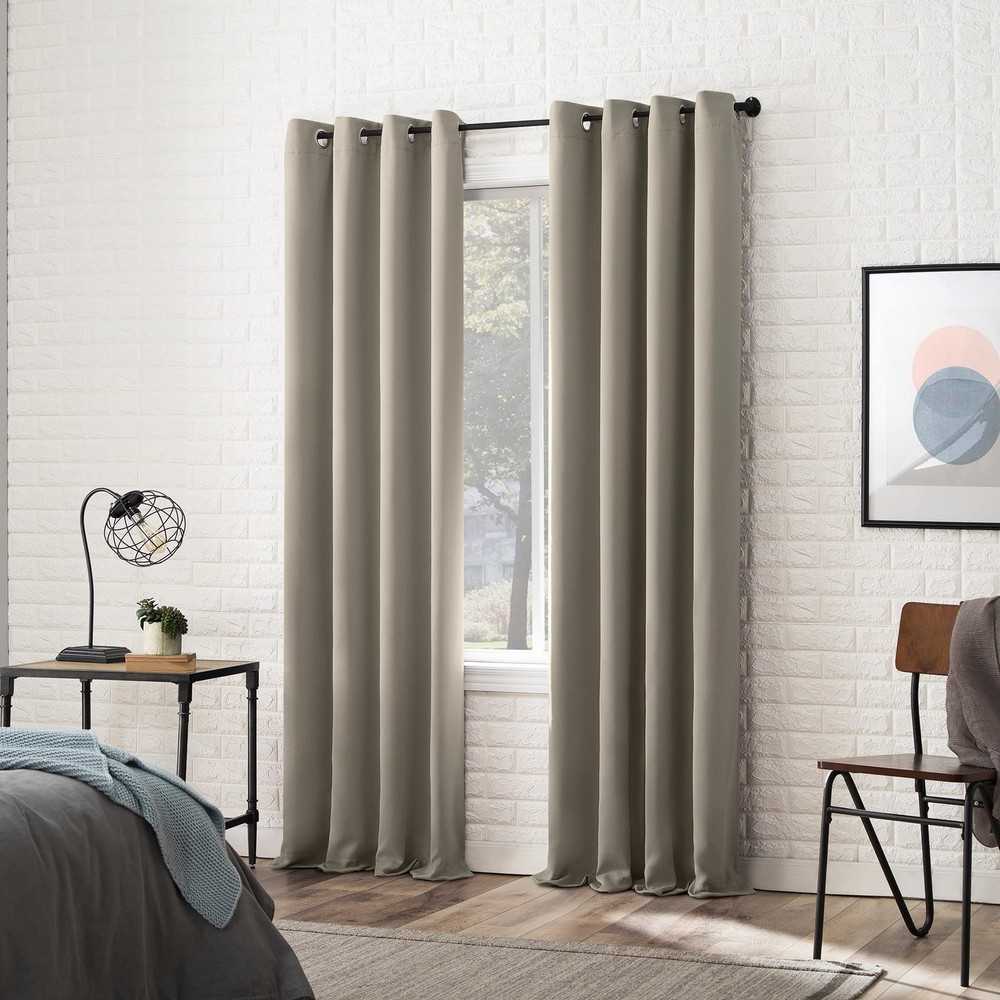 Blackout technology blocks out most unwanted light while enhancing privacy Energy efficient design reduces energy lost through your windows by up to 40% Thermal properties help keep summer heat and winter chill out of your home Noise reduction up to 30% helps you get a sounder, more uninterrupted sleep Built-in metal grommets fit curtain rods up to 1.5" in diameter.Pair includes 2 panels