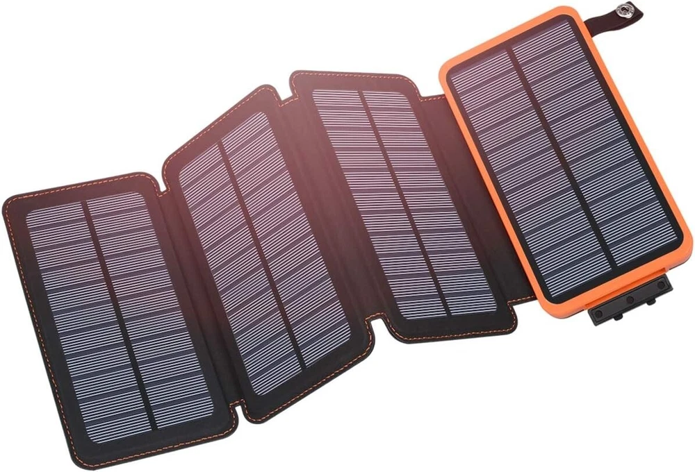 Connector Type USB Type C, USB Type A Brand Hiluckey Battery Capacity 25000 Milliamp Hours Color Orange Special Feature 4 Foldable Solar Panels, 3A Fast Charging, Short Circuit Protection, Built In Flashlight, Over Charging Protection 4 Foldable Solar Panels, 3A Fast Charging, Short Circuit Protection, Built In Flashlight, Over Charging Protection About this item 25000mAh High Capacity: The solar power bank charges up 6-8 times for a cell phone and 2.5 times for a tablet, great for a week-long trip. Large Solar Panels: This solar charger comes with 4 high-performance solar panels that can reach 6W in direct sunlight to keep your phone up and running even in places without electricity. Fast Charging: With the upgraded 15W output, the portable solar charger can fast charge an iPhone to 50% in 30 minutes. One USB C port and dual USB A ports achieve the simultaneous charging for three devices. Perfect for Outdoors: Built in bright flashlight; Compact and easy to hang it on your backpack to get sunlight, a must-have for various emergencies. 2.5X Recharging: The USB C port supports both input and output. A full recharge will take about only 8 hours with a PD fast charger (not included). Internal security system protects your device from damage. Product information Product Dimensions 6.18 x 3.54 x 1.38 inches Item Weight 1.21 pounds ASIN B07FMFGGNR Item model number HI-S025 Batteries 2 Lithium Polymer batteries required. (included) Is Discontinued By Manufacturer No Connectivity technologies USB Special features 4 Foldable Solar Panels, 3A Fast Charging, Short Circuit Protection, Built In Flashlight, Over Charging Protection Other display features Wireless Color Orange Manufacturer Dongguan Jili Intelligent Technology Co., Ltd. Country of Origin China Date First Available July 16, 2018