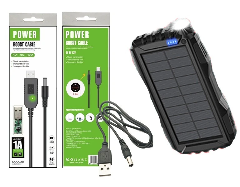 Solar Charger Power Bank 42800mAh and USB Power Boost Cable 5V to 12V