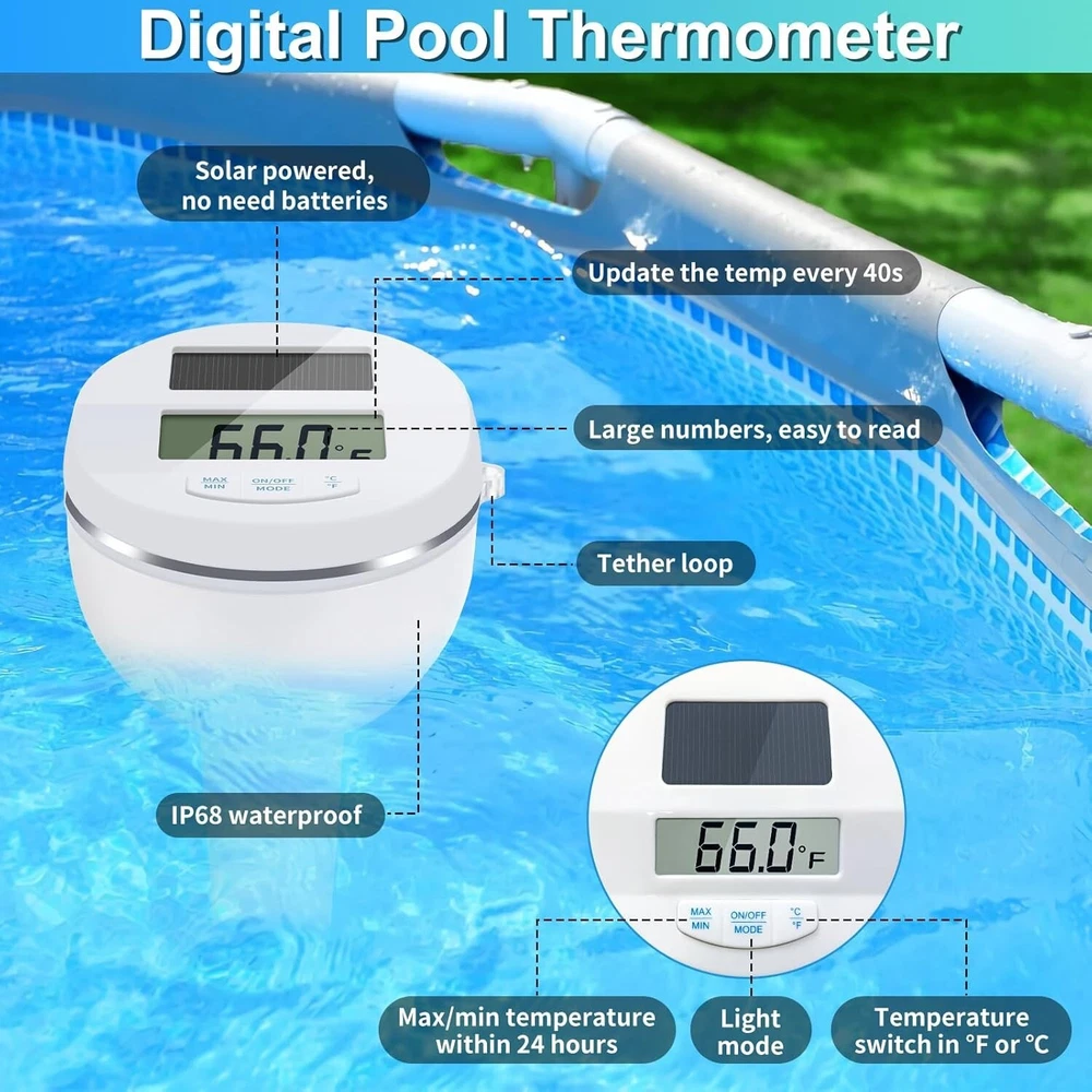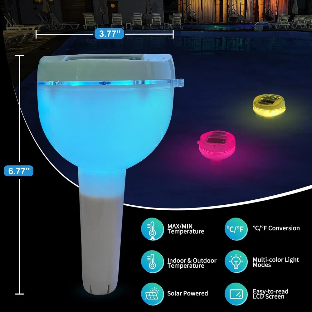 Solar Digital Pool Thermometer with Color-Changing Light for Night Readings ‹ › ‹ › ‹ › ‹ › ‹ › ‹ › ‹ › ‹ › ‹ › Solar Digital Pool Thermometer with Color-Changing Light - focuses on creating innovative pool products -New design for 2023, combining a pool thermometer and color-changing pool light -Automatically charges during the day and lights up with color-changing lights at night for a relaxing swimming experience Features: Large LCD screen for easy reading High-precision temperature sensor for accurate readings (-4 to 158 °F / -20 to 70 °C) Temperature updates every 40 seconds Anti-fog LCD screen 3 buttons for easy operation (ON/OFF, light change, C/F selection) Records highest and lowest temperature within 24 hours IP68 waterproof for versatile use in different water environments Environmentally friendly and durable design Benefits: Convenient and versatile pool thermometer with color-changing light feature Accurate temperature readings with quick updates Easy operation with intuitive buttons Records temperature history for reference Suitable for various water environments like pools, spas, hot tubs, baths, ponds, and aquariums Long-lasting and durable construction Why choose our Solar Digital Pool Thermometer? Enhance your swimming experience with the Solar Digital Pool Thermometer from . This innovative device not only provides accurate temperature readings but also doubles as a color-changing pool light for a soothing atmosphere at night. Easy to read, easy to use, and versatile in various water environments, this pool thermometer is a must-have accessory for any pool owner. Experience the convenience and reliability of the Solar Digital Pool Thermometer and elevate your pool experience today! Shipping Free & Fast Shipping - We offer free shipping to most of the USA with a normal delivery time of 3-7 days. However, due to the current situation, additional delivery time (up to 3 weeks) may be required for some items. Alternative Carriers - We may use alternative carriers (e.g. USPS, FedEx, UPS, etc.) to ensure your package arrives safely and on time. Due to the use of multiple carriers, we are unable to provide a tracking number automatically. Handling Time - Orders are processed and shipped within 1-2 business days of receiving cleared payment. Shipping Restrictions - Shipping to Alaska, Hawaii, Puerto Rico, Guam, and other US territories may incur shipping charges or delivery restrictions. Please contact us before ordering, or your order can be refunded/cancelled. State Restrictions - There may be restrictions based on your state of purchase. For example, certain items may not be shipped to California due to state regulations. Contact for Tracking Updates - If you require tracking updates or have any concerns about the delivery of your order, please feel free to contact us, and we will be happy to assist you. Return 30-Day Hassle-Free Returns - We want you to be completely satisfied with your purchase. If you are not, you can return the item within 30 days of receiving it for a full refund or exchange. Easy Return Process - To start a return, simply contact us and we will provide you with a prepaid return shipping label and detailed instructions. Restocking Fee - There are no restocking fees for returns. However, the buyer is responsible for return shipping costs if the return is not due to a seller's error. Refund Processing Time - Refunds will be processed within 5 business days of receiving the returned item in its original condition. Payment We accept all major credit cards, PayPal, and Apple Pay for your convenience. Your payment information is secure and encrypted to ensure a safe and seamless transaction. Please complete your payment within 3 days of purchase to avoid any delays in shipping. Feedback Your feedback is extremely important to us. We strive to provide the best products and customer service possible. If you are satisfied with your purchase, please take a moment to leave us a positive review. If you have any concerns or issues with your order, please contact us before leaving negative feedback. We are committed to resolving any problems and ensuring your satisfaction. Contact Us If you have any questions or concerns, please feel free to reach out to our customer support team. You can contact us through the eBay messaging system. We are available Monday to Friday, 9:00 am to 5:00 pm EST, and we will do our best to respond to your inquiry within 24 hours. Thank you for supporting our small family business! Unit Quantity: 1.0 Displayed Measurements: Temperature Features: LED Indicator,Waterproof,Color Changing Light,Fog-Resistant LCD Screen,Tether Loop Material: Plastic Power Source: Solar Brand: Unbranded Type: Thermometer Measuring Technology: Thermal Model: Not Set Item Length: 7 Inches System of Measurement: Celsius/Fahrenheit Size: Large Color: White MPN: Not Set Item Diameter: Not Set Item Height: Not Set Item Weight: 12.63 oz Item Width: Not Set Manufacturer Warranty: Not Set