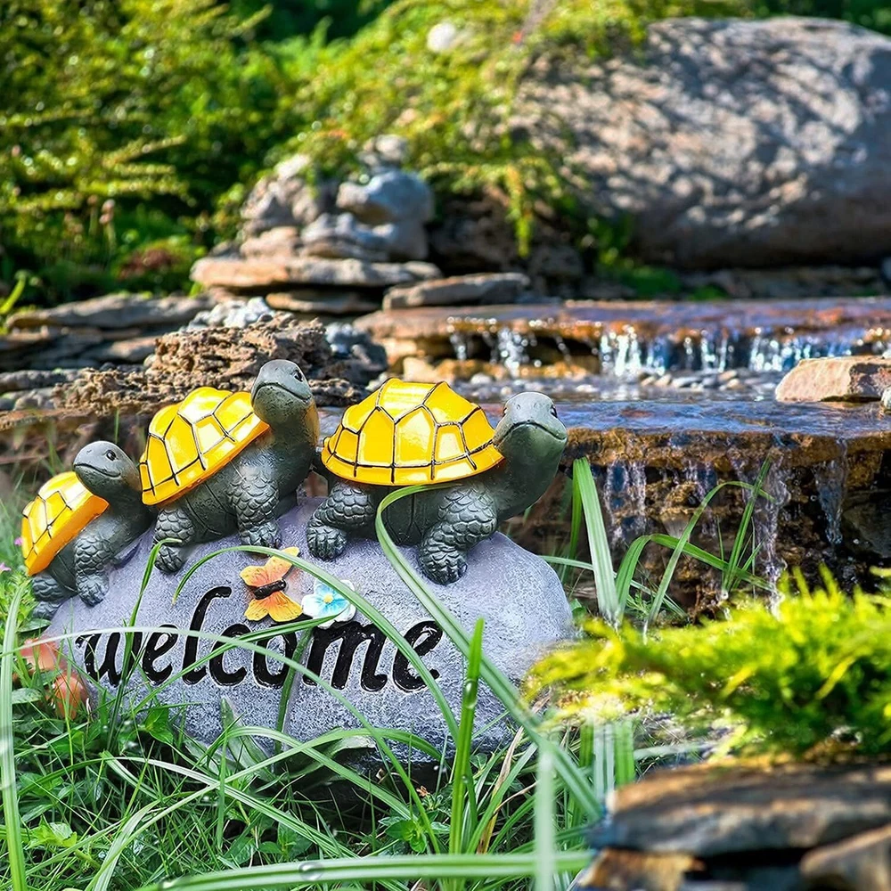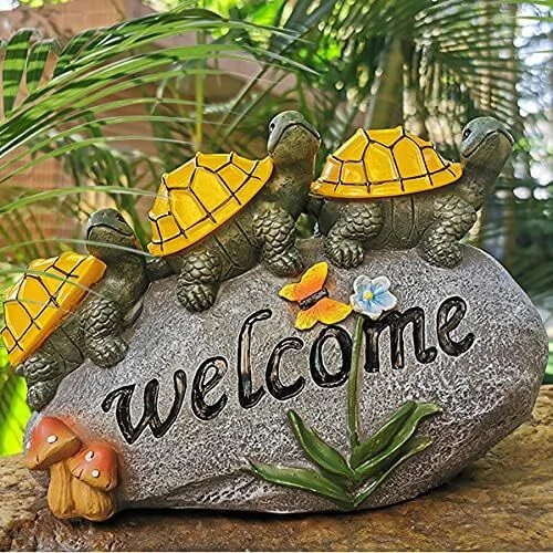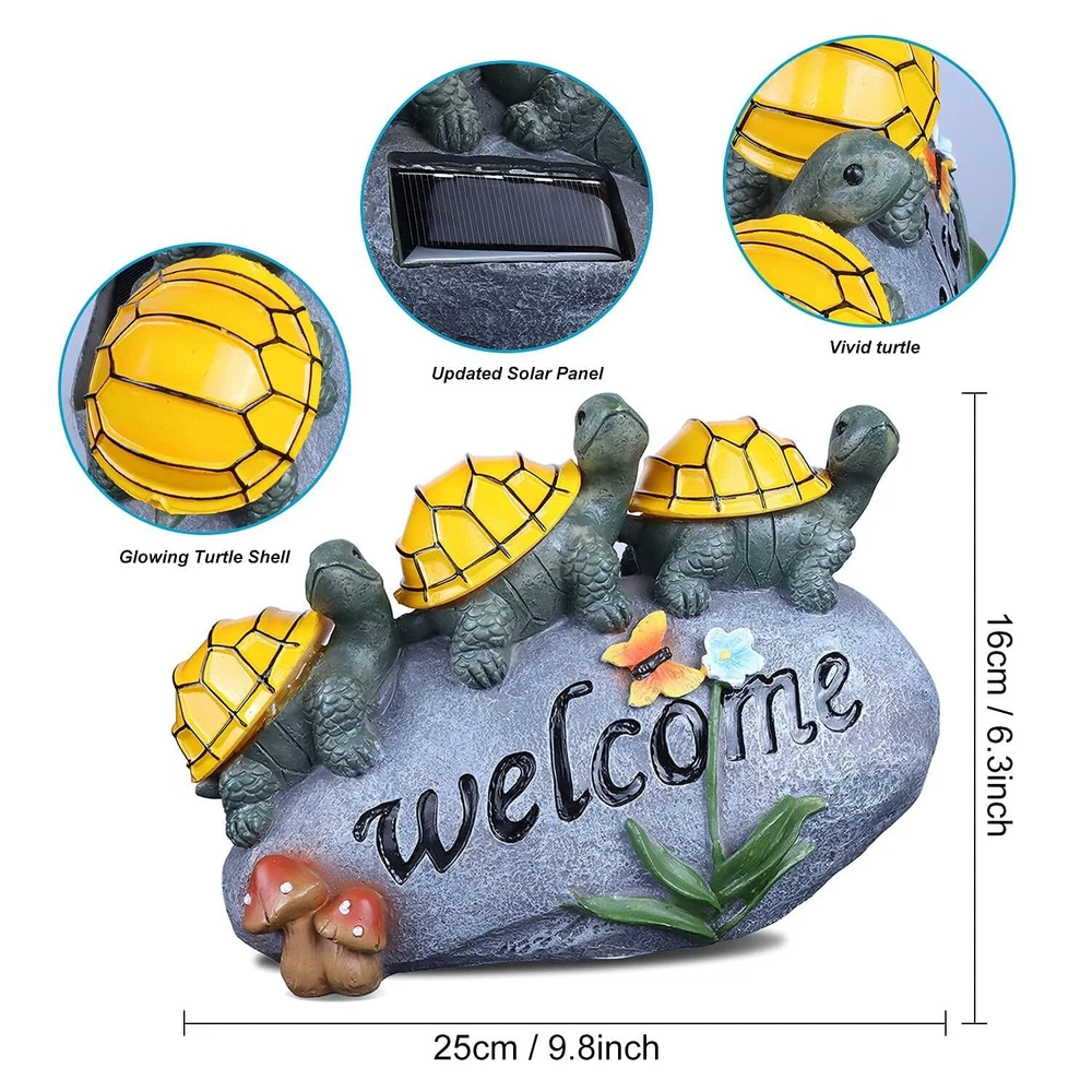 đ˘ăAdd an ecological touch to your Fall gardenăEvery garden statue and figurine is made of long-lasting resin and coated with UV-resistant paint. Making it solid and lasting. The garden turtles decorations to welcome guests onto your gardenălawn ă yard ă pond during the Thanksgiving Christmas and illuminate at night with fairy-tale colors. đ˘ăEnergy Efficiencyă100% solar-powered. Turn on the power switch before use, solar Turtles statue will automatically charge and energy during the day, and at night (in the dark) the Garden Turtles will light up automatically (warm light) to illuminate your Fall garden, which will save you time and electricity bills. đ˘ăHigh-Quality & Waterproof Materialsă Finished with a resistant ip44 coating, this solar garden decorations is built to withstand all types of weather conditions. Color fading, water and frost neednât be a concern with this durable resin, outdoor Fall garden decor. It is sure to brighten up your Outdoor GardenăyardăLawnăpondăpatio. đ˘ăWarm GiftsăSize: 9.8 "L x 6.3" W x 3.9" H. The garden dĂŠcor figurines is of the best garden gifts you can give. This lawn ornament is a perfect gift for your family and friends for Thanksgiving Christmas holiday,birthdays, weddings and housewarming. This charming outdoor statue will also add charm to your garden and lawn decor. Light up the fairy tale world. đ˘ă180 DAYS FREE ă We want you to love this addition to your garden and home decor. If for some reason you are not completely satisfied, we offer refunds and returns.180 days Free .