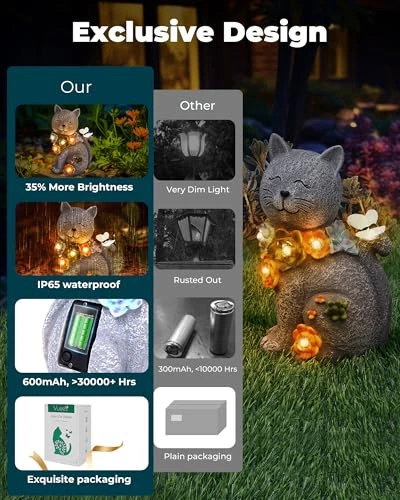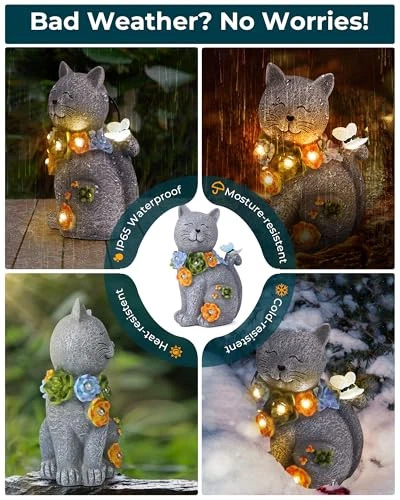 30 Days Return Policy Fast Delivery Trusted seller Solar Garden Statues Lights, Cat Figurines Succulent Flower Butterfly Art Design for Home, Outdoor, Patio, Porch, Yard, Balcony Ornament, Unique Gift Ideas for Housewarming Gardening Mom Grandma Product Description CAT STATUES LIGHT: Illuminate your garden with solar-powered elegance. Solar Cat Statue is environmentally conscious, harnessing the power of the sun to create a mesmerizing nighttime display. MOST SUITABLE SIZE: Thoughtfully designed, our cat statue strikes the perfect balance between charm and space efficiency. Ideal for yards, lawns, patios, and balconies, it seamlessly complements any outdoor setting. PROFESSIONAL AFTER-SALES SERVICE: is committed to your satisfaction. Our dedicated after-sales team ensures you receive prompt assistance and support, providing a seamless experience from purchase to placement in your garden. UNIQUE GIFTS IDEA: Surprise the gardening enthusiasts in your life with a unique and enchanting gift. Solar Cat Statue makes for a heartwarming housewarming present, perfect for moms and grandmas who cherish their outdoor spaces. WHAT'S INCLUDED: You will receive a solar cat garden statues, a user manual, and a packing box. We offer a worry-free 18-month warranty and provide friendly customer service with a 24-hour response time. Upon receiving the fairy solar lights, please press the ON button and keep the solar panel in darkness to test if the lights illuminate. Christams decoration gifts for mom, grandma and family. Shipping Returns Payment Shipping Shipping is FREE to all addresses other than APO/PO boxes in the lower 48 states. All our stock ships from US-based warehouses. Shipped via USPS or UPS (depending on location and package weight) Unless stated otherwise, all orders will ship within 24-72 hours of your payment being processed. Check our feedback to see the great reviews of FAST shipping we offer. Returns As our valued customer, we will do our best to make sure the product you receive arrives to you on time and as expected. If you are not satisfied with your purchase, please contact us within 30 days of receiving your order to process a return. Payment We currently accept payment via eBay managed payments only. Once payment is cleared, we will dispatch your shipment within 1-3 business days. Please refer to the "Shipping" tab for more information regarding shipping speed to your destination.