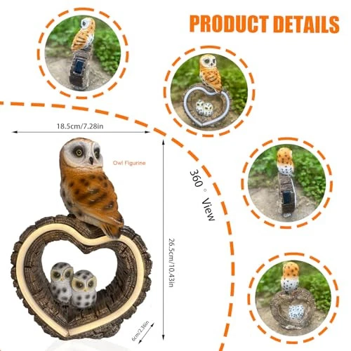 30 Days Return Policy Fast Delivery Trusted seller Solar Outdoor Garden Statue, Garden Decor Waterproof Solar Owl Lights for Outside Yards, Art Lawns,Christmas,Home Decor,Birthday Gifts for Women Mom(Love Owl) Product Description Solar owl Satues with Love:The guardian of the owl mother constitutes a warm little landscape in your garden, and is a great guardian brought by the family Garden decor with solar energy: The Solar Garden Owl statue is powered by the sun and emits a soft glow at night, bringing a warm feeling to the whole garden Solar owl statue lights lasting Use: The Owl Garden statue is made of high-quality resin that can withstand rain, sunlight and other outdoor factors. It is durable and does not fade or crack easily Solar owl present: Owl and bird statues have a charming antique appearance and cute expressions are the best choice for mothers day gifts& love Holiday Birthday present For Women. Solar garden decor owl lights:Whether you place them on a lawn, patio, Home decor,planter, windowsill, porch, shelf or patio, owl LED garden solar lights will add a touch of charm and whimsy to your outdoor space. Shipping Returns Payment Shipping Shipping is FREE to all addresses other than APO/PO boxes in the lower 48 states. All our stock ships from US-based warehouses. Shipped via USPS or UPS (depending on location and package weight) Unless stated otherwise, all orders will ship within 24-72 hours of your payment being processed. Check our feedback to see the great reviews of FAST shipping we offer. Returns As our valued customer, we will do our best to make sure the product you receive arrives to you on time and as expected. If you are not satisfied with your purchase, please contact us within 30 days of receiving your order to process a return. Payment We currently accept payment via eBay managed payments only. Once payment is cleared, we will dispatch your shipment within 1-3 business days. Please refer to the "Shipping" tab for more information regarding shipping speed to your destination.