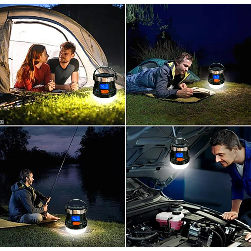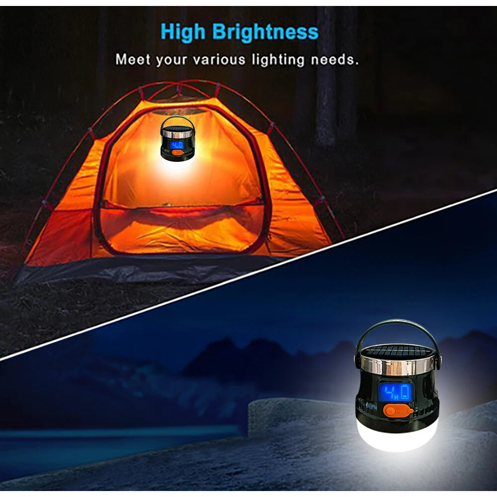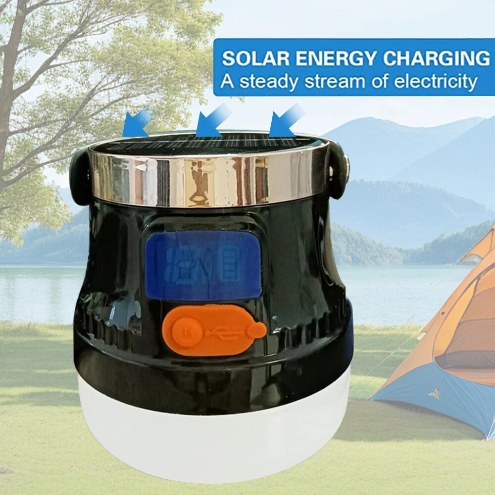 Solar Portable LED Flashlight USB Rechargeable Camping Tent Light Lantern Lamps