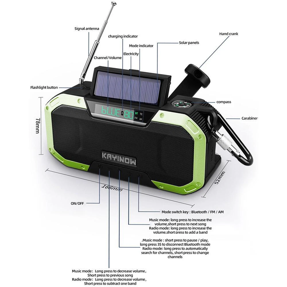 Free and fast shipping , shipping take up 1-7 Business Days 30 Day Return Accepted EASY PAYMENT via PayPal, Credit Card, PayPal Credit, Google Pay... Solar Power Bank 5000mah Mobile Phone Plastic Multicolor Small Radio Flashlight The United States customers attention: When you select "Ship From United States", the following addresses will not provide delivery service: Hawaii, Alaska, Puerto Rico, Guam, APO, DPO, FPO, etc. Recommend you to choose "Ship From China".Thank you!!! Clientes de España atención: Cuando selecciona "Enviar desde España", el servicio de entrega no está disponible en los siguientes códigos postales: 35000-35999 38000-38999 Se recomienda que elija "Enviar desde China". ¡Gracias! ! ! Multifunctional Portable Bluetooth-Compatible Speaker Hand Crank Solar Radio AM/FM Outdoor Emergency Radio LED Flashlight and 5000mAh Power Bank IPX5 Waterproof Main selling point: With Bluetooth-compatible speaker function, beautiful sound quality Comes with hand-crank generator, solar charging With radio function, automatic search station 5000mAh capacity battery for charging mobile devices With flashlight function With reading night light function With SOS alarm function With compass function With dual power protection Portable and durable IPX5 waterproof Feature: NEWEST DESIGN: This hand crank radio a biggest 5000mAh replaceable li-ion battery,the most powerful lighting functions include super-bright flashlight and reading lamp,and battery indicator. Brand new color box packaging, best gift.The DF-580 is the best value for emergency radio in this market. 7W Bluetooth-Compatible SPEAKER: The DF-580 is not only a hand crank radio for emergency .but also a 7W IPX5 waterproof rainproof Dustproof outdoor travel speaker .Breathtaking stereo sound with deep bass is delivered with exceptional clarity .You can take it for cycling, camping, climbing or listening to music at home .Equipped with BT 5.0 technology and compatible with all Bluetooth-Compatible devices . 5000mAh LARGE CAPACITY: Compared with 1000mAh or 2000mAh emergency radio on the market, the solar radio has upgraded to 5000mAh batter 18650 Li-ion battery. Hand crank, solar charging, Micro USB phone cable 3 ways to charge. Can be charged on sunny day, even if in dark without electricity, charge it by hand crank. Full power, safety forever.What's more, It's also a charger for your phone. SUPER-BRIGHT FLASHLIGHT AND READING LAMP: If you are an outdoor sports enthusiast or need to walk in a place without lights,Waterproof IPX6 Radio with a flashlight is a good choice. Its farthest lighting distance is more than 10m, which is more than other most emergency solar radios. In addition, reading lights will greatly help you get up at midnight and avoid waking up your family. Specification: Product name: Solar hand crank radio Product model: DF-580 Product color: red, green, black, silver gray, orange, blue, jungle camouflage, camouflage blue (optional) Bluetooth-Compatible version: Bluetooth-Compatible V5.0 Bluetooth-Compatible chip: Jerry Bluetooth-Compatible support: A2DP/AVRCP/HFP/HSP Frequency Response: 60-16khz Horn unit: 45/mm Output power: 7W Connection method: Bluetooth-Compatible/FM/AM/B) Transmission distance: 10 meters Playing time: 20 hours Waterproof grade: IPX-5 Lithium polymer battery: 5000/mAh Shell material: ABS+TPU FM (standard version 87.5---108MHZ AM (standard version 522---1620KHZ Speaker unit: S/Nratio: >80dB(A) Product size: 166*52*78mm Color box: 200*90*62mm Product weight: 416g Weight with package: 550g Note: Due to the different monitor and light effect, the actual color of the item might be slightly different from the color showed on the pictures. Thank you! Please allow 1-2cm measuring deviation due to manual measurement. 1*Solar Radio 1*USB charging cable 1*Carabiner 1*User Manual REVIEWS The product came very well packaged. I'm very happy. thank you for everything. Seller strongly recommended. This is great! I definitely recommend! Product looks amazing Delivery was fast. Excellent seller, great communication. I advise everyone to buy it!