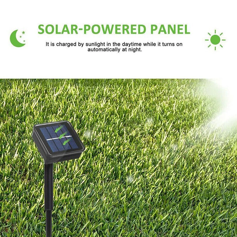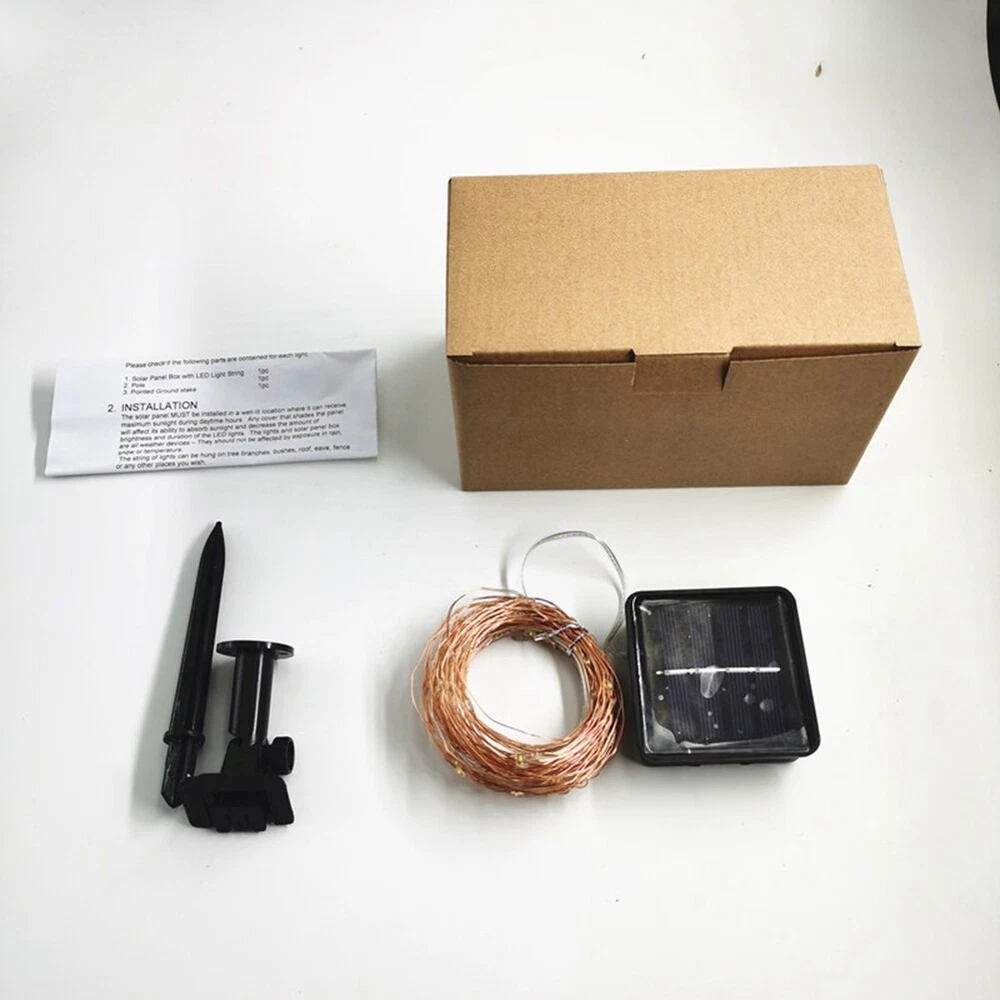 Solar Powered Lights 200 LED String Fairy Lights for Outdoor Christmas1325 Add a warming soft white glow to your peaceful garden with the Solar-Powered String Of 200 LED Fairy Lights - 20-metres. This generous 20-metre string of 200 LED fairy lights provides you with more than enough twinkling lights to create an enchanting outside atmosphere, suitable for sweltering summers and festive alike. Presented on a high-quality copper wire, these outdoor string lights can be easily wrapped around trees, patios, balconies, fences and even garden decorations. The thin and flexible wire can effortlessly navigate corners without breaking or fraying to bring attention to any aspect of your garden. the of the included solar panel towards the sun and position in a sunny spot in your garden by inserting the spiked pole into soft ground or gravel. Once the panel is fully up with enough juice, you'll be to add a magical ambiance to your shrubbery as the lights continue to work for an impressive six to eight hours! Multifunctional 8 lighting modes: Beautiful and brilliant lighting modes include waves, combination, sequential, gradual, flash, slow fade, flash and steady on. 8 lighting modes can meet all your requirements for different lights. LED string lights produce a warm, soft white glow which lends a festive touch to varied areas such as lamp boxes, porches, gardens, patios, balconies and more. Item name:Solar LED String Power source:Solar Light Colour:Warm white 2 Mode Adjustable:Flashing/steady on Switch:On/off Voltage:DC 5V Solar Panel:0.5W Power operated:Solar energy (When the solar panel do not face to any light, the LEDs will work) LED quantity:200pc LEDs String light material:Copper Wire Features:Waterproof - IP65 Product light source:0603 patch lamp beads Charging time:4-6 hours Working ti