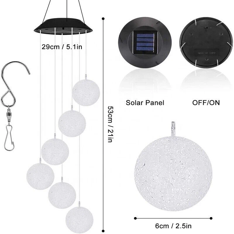 Solar Wind Chime Color Changing LED Light Outdoor Hang Crystal Ball Decoration Package Include : 1x Solar LED Wind Chime Light Available in 5 Styles Style 1 - Color: Cardinal Red Bird - Material: Plastic, Acrylonitrile Butadiene Styrene - Size: 2.5" x 3.5" ( Bird size) 21.5" (length) x 5.5" (width) Style 2 - Color: Crystal Ball - Material: Plastic, Crystal - Size: 2.5" x 2.5" ( Ball size) 21" (length) x 5.1" (width) Style 3 - Color: Angel Wind - Material: Plastic, Acrylonitrile Butadiene Styrene - Size: 4.1" x 3.1" ( Angel size) 19.3" (length) x 4.9" (width) Style 4 - Color: Moon & Star - Material: Plastic, Acrylonitrile Butadiene Styrene - Size: 2.9" x 2.7" (Moon size) 2.5" x 2.5" (Star size) 31" (length) x 4.9" (width) Style 5 - Color: Pineapple - Material: Acrylonitrile Butadiene Styrene - Size: 8.7" (length) x 5.9" (width) Specifications: Description: Solar Charging -The solar wind chime light uses the newest of solar charging, which is energy-saving. The improved high-power solar panel can quickly absorb energy and make charging faster. It can be used for 10 hours at night when fully charged during the day. IP65 Waterproof -The outdoor solar wind chime light has IP65 rainproof and moisture-proof grade and uses high-quality and durable ABS material, which will not fade or deform. You can safely hang it in courtyards, gardens, trees, lawns, and other outdoor places. Multicolor LED Lamp Beads - Each led solar wind chime has built-in 6 colors of LED lamp beads, which can be illuminated at night to produce a surreal effect. East To Use -Humanized solar power design, no wiring or external power supply required. The switch is set to "ON", the solar light will automatically light up at dusk. Lightweight and easy to hang. The hook can be easily hung on trees, patios, gardens, and other outdoor places. Holiday Decor -These solar wind chime lights add unique hanging decorations to your outdoor and indoor space and increase the festive atmosphere. It is the best decorations choice for Christmas, birthdays, friend gatherings, and home party. Note: Please allow slight dimension difference due to different manual measurement. Due to the shooting angle and the display, the goods may have a color difference from the picture. Thank you for your kindly understanding. Guarantee • Fast & Free Shipping on ALL Orders We believe that you should enjoy the benefit of FREE Shipping on all of your orders within the all Continental States. That's why no matter what you buy, we will ship it for FREE, so the price you see is exactly what you pay. No hidden fees or shipping charges. • Most Items Delivered in 2-6 Business Days When you're buying from us, you deserve fast and reliable service. That's why we have a "Same Business Day" processing in place and wide range of shipping options to choose from in order to deliver your package as soon as possible. *2-6 business days’ time-frame is NOT GUARANTEED and was statistically calculated based on all previous orders. • ALL Orders Placed On Business Days Before 4 PM EST Will Be Shipped Same Day Why wait a day or more for your order to ship? All orders placed before 4 pm EST, Monday to Friday, ship the SAME day. Orders placed on Friday after 4 pm EST, Saturday and Sunday will be shipped the next Monday (if business day). We are closed on all Federal Holidays. • 30 Days Money Back Guaranteed! We will gladly accept your return within 30 days of the original purchase. Please, see below for our full Returns Policy. Shipping • Most orders arrive at your door in 2-6 Business Days FOR FREE! • Place your order before 4 pm EST and it will be shipped the same day, Monday to Friday, excluding major holidays. • We will ship your order to your PayPal Verified address provided. • Please verify your address and make sure that it is your current address before making your payment. Any address change requests after your payment CANNOT be guaranteed. • We do not include invoice with our shipments. Feedback • Positive feedback is automatically done once your order is shipped. • We appreciate all our customers to post a Positive Feedback and "Five-Star" scores. • If for any reason you are not satisfied with your purchase. Please contact us via eBay Message and We will do our best to satisfy you! Payment & Cancellation • Instant PayPal payment is required. • We also accepts Visa, MasterCard, Discover, and American Express through PayPal guest checkout. • Sales tax is charged by eBay based on your shipping address. • To uphold a shipping speed, your order will be processed almost immediately. If you change your mind after your payment is confirmed, we will do our best to stop the order, however, we CANNOT guarantee the cancellation. Return • We will gladly accept your return within 30-Days of the original purchase. • Our return process is simple and fast: 1. We will pay for the return shipping label if you received a broken/defective item(s) or the item(s) doesn't match our description. As soon as we receive the item(s) back we will process a refund for the item(s)which was/were returned. 2. You will be required to pay for the return shipping label if you changed your mind or no longer need the item(s). As soon as we receive the item(s) back we will process a refund for the item(s) which was/were returned. • If we'll receive a package back because of the incorrect address, the refund will be processed excluding our shipping cost. Contact Us • Send us a message on eBay and we will answer within 24h on business days.