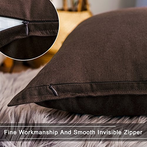 Solid Cotton Linen Decoration Toss Throw Pillow 18" x 18" (Pack of 2) Brown
