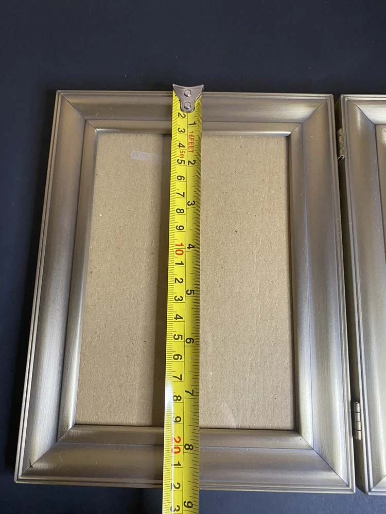 This listing is for a beautiful vintage metal picture frame that holds 2, 7x5inch photos. This frame has a lovely gold color to it and is in great vintage condition. I try to be thorough in my descriptions and photos, so any questions, please reach out.