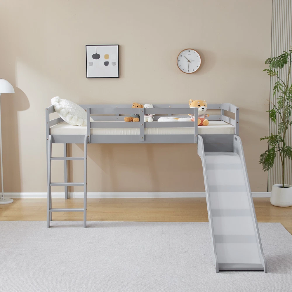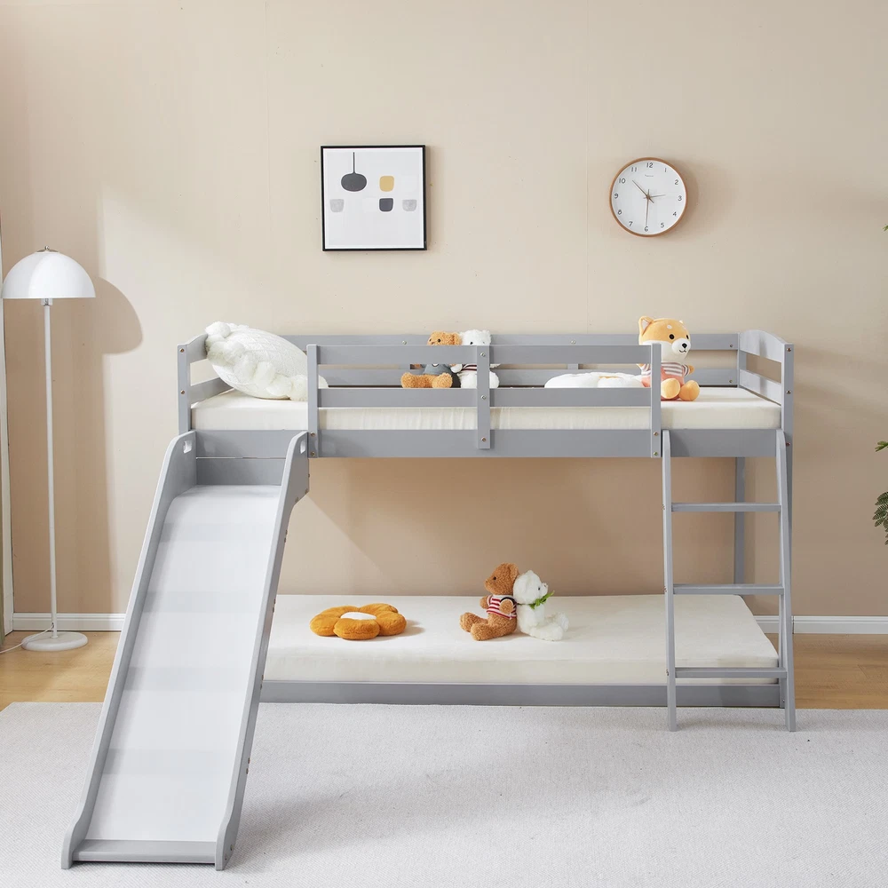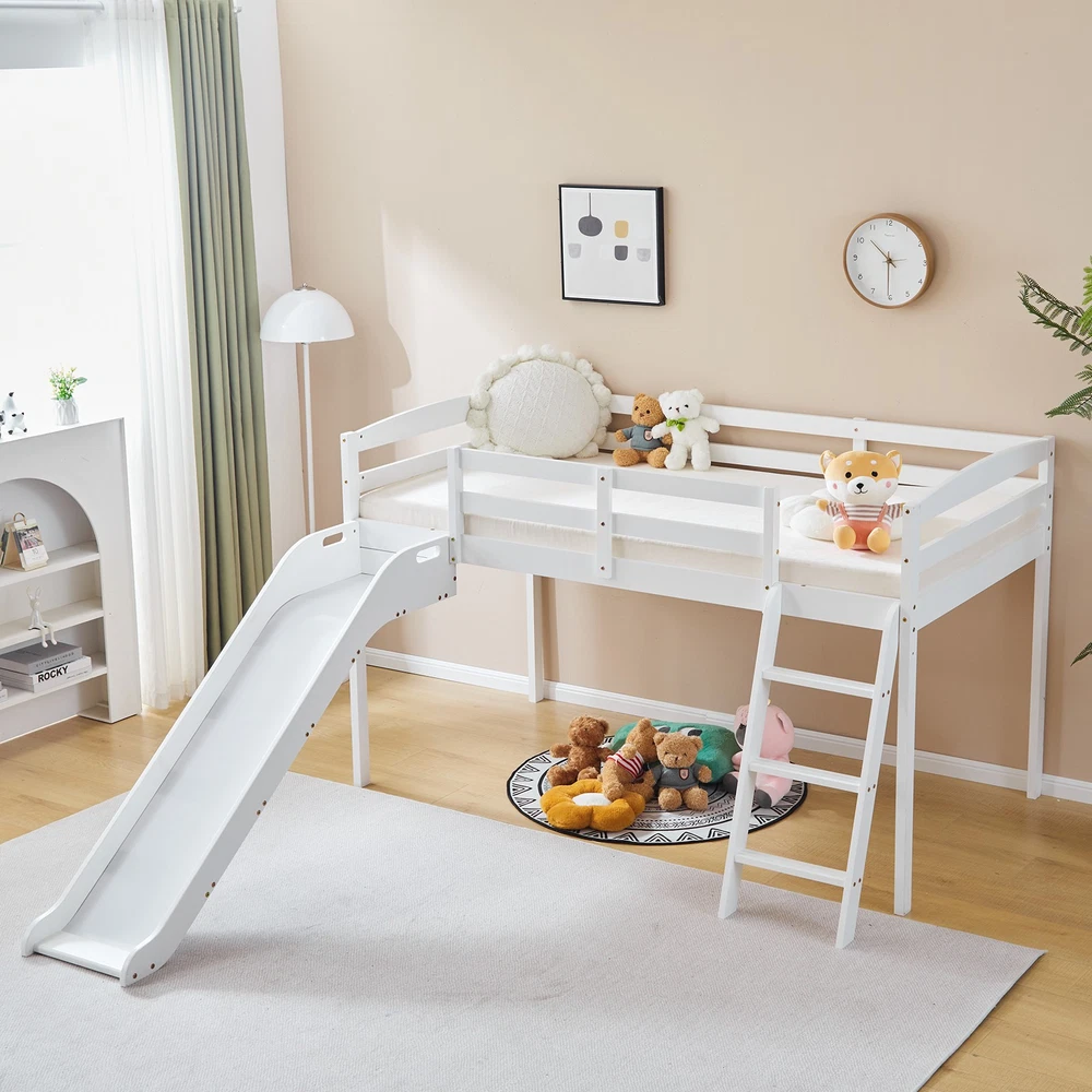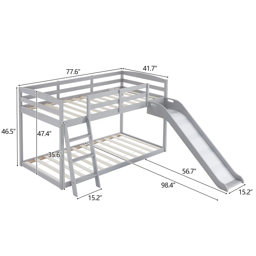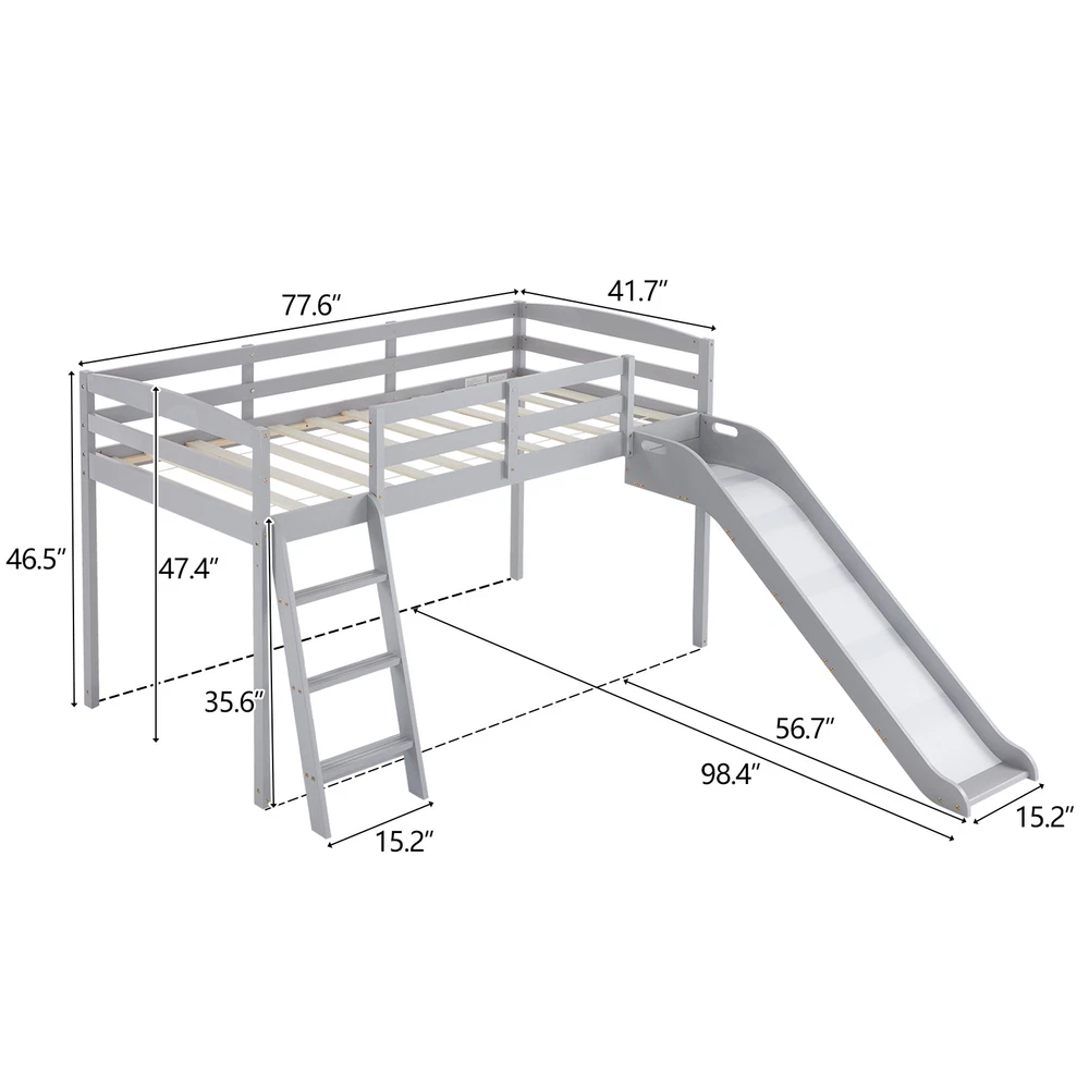 listing template VISIT OUR STORE SIGH UP FOR EMAIL Solid Pine Wood Floor Bunk Beds Frame Kids Bunk Bed for Bedroom Teens Dormitory Introductions Transform your child's bedroom into a fun and functional space with our Twin Size Low Loft Bed with Slide and Ladder. Designed for both play and rest, this classic solid wood bed features an exciting slide and secure ladder, making bedtime an adventure. With a generous 660 lbs weight capacity and 14" safety guardrail, parents can trust in its durability and safety. The low-profile design fits comfortably under standard ceilings, while the stylish grey finish complements any room decor. Features - Twin-size low loft bed with an attached slide for endless fun - Solid wood construction ensures long-lasting durability - Angled ladder with anti-slip steps for safe climbing - 14" safety guardrail provides extra security on the top bunk - Impressive 660 lbs weight capacity for superior strength - Space-saving design ideal for small bedrooms - Neutral grey finish matches various decor styles - Smooth, rounded edges for added child safety Specifications - Material: Solid wood - Dimensions: 77.56"L x 41.73"W x 47.44"H - Bed Size: Twin / Twin Over Twin - Weight Capacity: 660 lbs - Safety Features: 14" guardrail, anti-slip ladder steps - Color: Grey White - Assembly: Required Package Includes - 1 x Twin low loft bed frame / 1 x Twin Over Twin bed frame Shipping Policy 1. Ship worldwide from New Jersey by reliable shipping companies -- USPS, UPS, FEDEX, DHL, etc., and only to VERIFIED PAYPAL ADDRESS. Transport Delivery ETA. Package handling only takes 1 business day at our warehouse, so please make sure entering correct payment and shipping information before checking out. Once your payment is completed, we are not going to accept any more changes to your order. 2. International Buyers – Please Note: a. Import duties, taxes and charges are not included in the item price or shipping charges. These charges are the buyer's responsibility. b. Please check with your country's customs office to determine what these additional costs will be prior to bidding/buying. 3. Please check your shipping address carefully before checkout, it can't be changed if order completed. 4. Orders placed on weekend will be shipped within 2 days.Notification of shipment with tracking number will be sent to buyers. 5. Standard shipping: 2-7 business days Expedited Shipping: 2-3 business days One-day Shipping: 1 business day International shipping: Varies 6.Ship within 1 business day once payment completed. Notification of shipment with tracking No. will be sent to buyer. 7.We offer discounts for combine shipping. Please contact us first if you need combine shipping, and an invoice with discount will be sent to you. 8.Please allow 5 business days for delivery to US destinations on any eBay orders and 14 business days for delivery to any International destinations. We highly recommend our buyer choose priority/expess mail for international delivery which is much more stable. Return Policies 1. Refunds given only if item DOA and cannot be replaced via PAYPAL . If so, Please contact us with 5 days since you receive the item and and return to us within 30 days from the delivery date for exchange or refund. 2. If you need return, please contact our customer service representative, let us know the detailed problem and send us some pictures for confirmation. Payment Payment should be sent within 8(EIGHT) days of auction closing. Feedback If you are dissatisfied for any reason, please do not be quick to leave negative/neutral feedback. We work hard to make sure EVERY CUSTOMER 100% SATISFIED and resolve any problem for you. Work Time Work Time: Monday to Saturday About Us | Newsletter| Feedback| Contact Us Copyright © 2022 LikeDeal. All rights reserved. 无标题文档 Solid Pine Wood Floor Bunk Beds Frame Kids Bunk Bed for Bedroom Teens Dormitory Introductions Transform your child's bedroom into a fun and functional space with our Twin Size Low Loft Bed with Slide and Ladder. Designed for both play and rest, this classic solid wood bed features an exciting slide and secure ladder, making bedtime an adventure. With a generous 660 lbs weight capacity and 14" safety guardrail, parents can trust in its durability and safety. The low-profile design fits comfortably under standard ceilings, while the stylish grey finish complements any room decor. Features - Twin-size low loft bed with an attached slide for endless fun - Solid wood construction ensures long-lasting durability - Angled ladder with anti-slip steps for safe climbing - 14" safety guardrail provides extra security on the top bunk - Impressive 660 lbs weight capacity for superior strength - Space-saving design ideal for small bedrooms - Neutral grey finish matches various decor styles - Smooth, rounded edges for added child safety Specifications - Material: Solid wood - Dimensions: 77.56"L x 41.73"W x 47.44"H - Bed Size: Twin / Twin Over Twin - Weight Capacity: 660 lbs - Safety Features: 14" guardrail, anti-slip ladder steps - Color: Grey White - Assembly: Required Package Includes - 1 x Twin low loft bed frame / 1 x Twin Over Twin bed frame Shipping + 1. Ship worldwide from New Jersey by reliable shipping companies -- USPS, UPS, FEDEX, DHL, etc., and only to VERIFIED PAYPAL ADDRESS. Transport Delivery ETA. Package handling only takes 1 business day at our warehouse, so please make sure entering correct payment and shipping information before checking out. Once your payment is completed, we are not going to accept any more changes to your order. 2. International Buyers – Please Note: a. Import duties, taxes and charges are not included in the item price or shipping charges. These charges are the buyer's responsibility. b. Please check with your country's customs office to determine what these additional costs will be prior to bidding/buying. 3. Please check your shipping address carefully before checkout, it can't be changed if order c