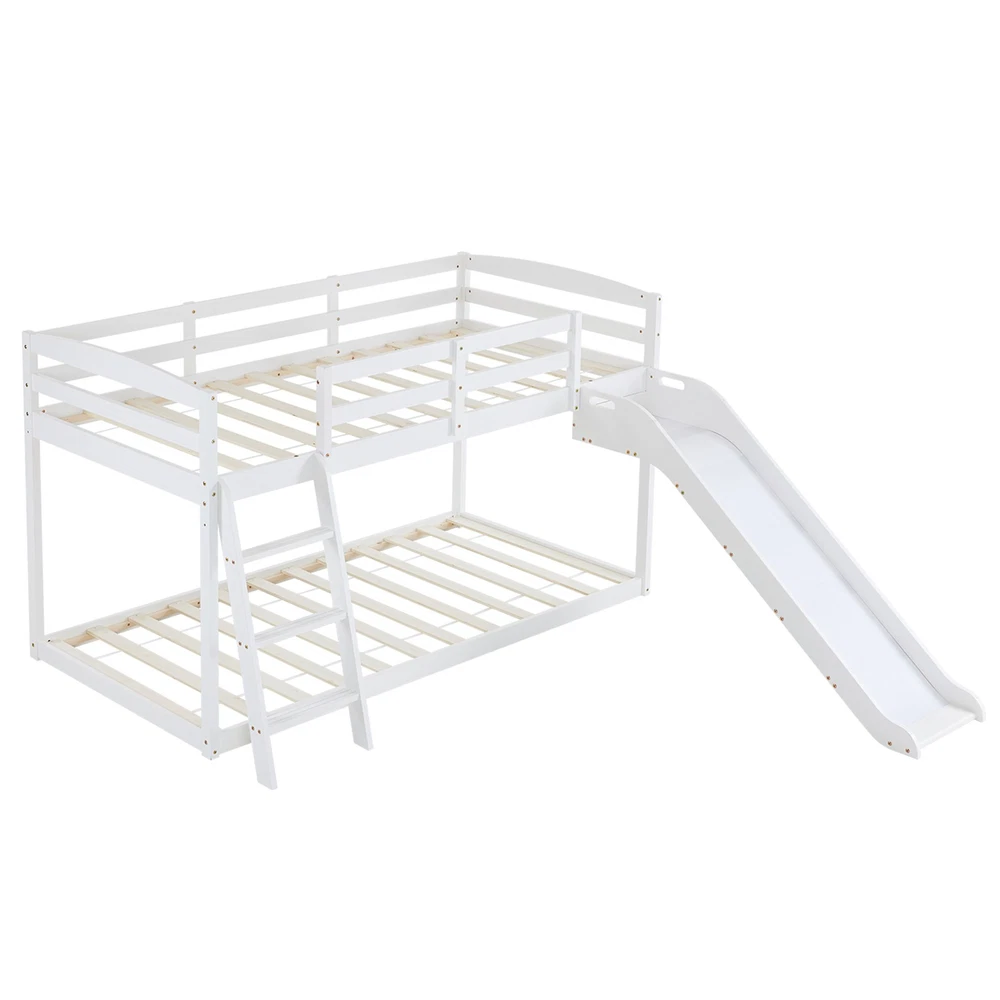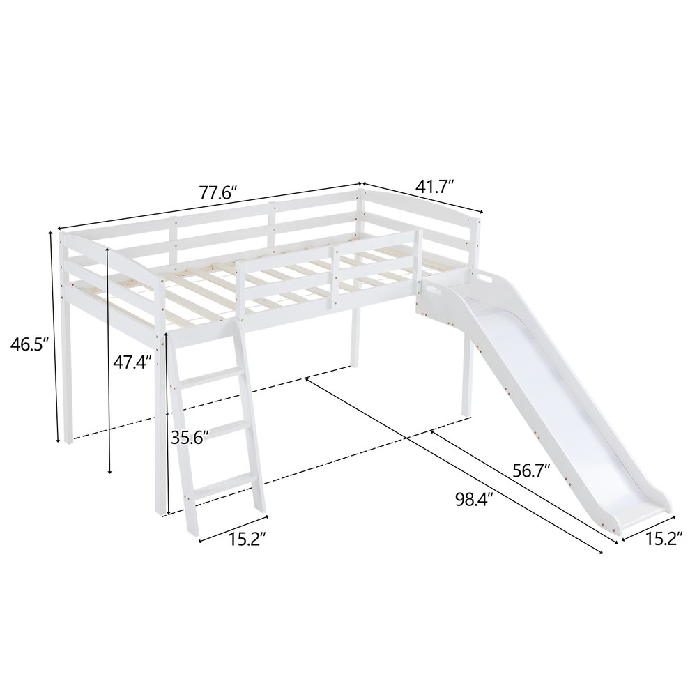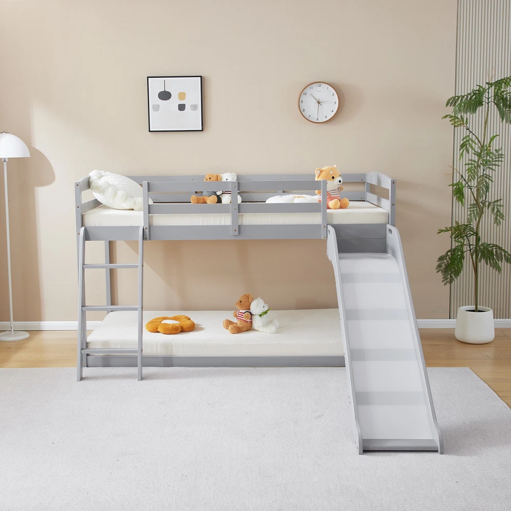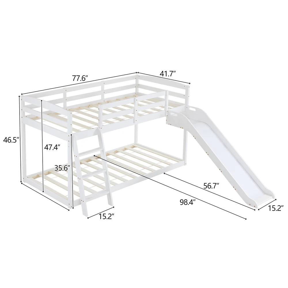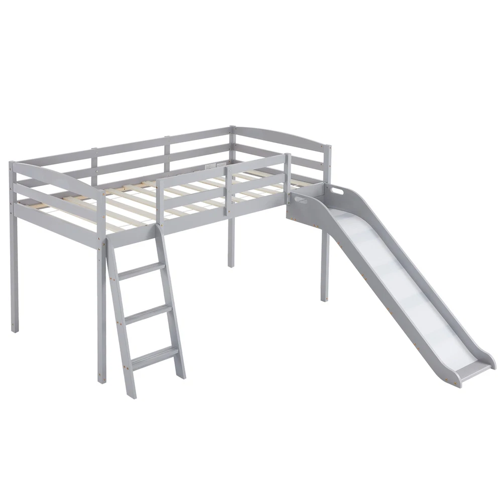 listing template VISIT OUR STORE SIGH UP FOR EMAIL Solid Pine Wood Floor Bunk Beds Frame Kids Bunk Bed for Bedroom Teens Dormitory Introductions Transform your child's bedroom into a fun and functional space with our Twin Size Low Loft Bed with Slide and Ladder. Designed for both play and rest, this classic solid wood bed features an exciting slide and secure ladder, making bedtime an adventure. With a generous 660 lbs weight capacity and 14" safety guardrail, parents can trust in its durability and safety. The low-profile design fits comfortably under standard ceilings, while the stylish grey finish complements any room decor. Features - Twin-size low loft bed with an attached slide for endless fun - Solid wood construction ensures long-lasting durability - Angled ladder with anti-slip steps for safe climbing - 14" safety guardrail provides extra security on the top bunk - Impressive 660 lbs weight capacity for superior strength - Space-saving design ideal for small bedrooms - Neutral grey finish matches various decor styles - Smooth, rounded edges for added child safety Specifications - Material: Solid wood - Dimensions: 77.56"L x 41.73"W x 47.44"H - Bed Size: Twin / Twin Over Twin - Weight Capacity: 660 lbs - Safety Features: 14" guardrail, anti-slip ladder steps - Color: Grey White - Assembly: Required Package Includes - 1 x Twin low loft bed frame / 1 x Twin Over Twin bed frame Shipping Policy 1. Ship worldwide from New Jersey by reliable shipping companies -- USPS, UPS, FEDEX, DHL, etc., and only to VERIFIED PAYPAL ADDRESS. Transport Delivery ETA. Package handling only takes 1 business day at our warehouse, so please make sure entering correct payment and shipping information before checking out. Once your payment is completed, we are not going to accept any more changes to your order. 2. International Buyers – Please Note: a. Import duties, taxes and charges are not included in the item price or shipping charges. These charges are the buyer's responsibility. b. Please check with your country's customs office to determine what these additional costs will be prior to bidding/buying. 3. Please check your shipping address carefully before checkout, it can't be changed if order completed. 4. Orders placed on weekend will be shipped within 2 days.Notification of shipment with tracking number will be sent to buyers. 5. Standard shipping: 2-7 business days Expedited Shipping: 2-3 business days One-day Shipping: 1 business day International shipping: Varies 6.Ship within 1 business day once payment completed. Notification of shipment with tracking No. will be sent to buyer. 7.We offer discounts for combine shipping. Please contact us first if you need combine shipping, and an invoice with discount will be sent to you. 8.Please allow 5 business days for delivery to US destinations on any eBay orders and 14 business days for delivery to any International destinations. We highly recommend our buyer choose priority/expess mail for international delivery which is much more stable. Return Policies 1. Refunds given only if item DOA and cannot be replaced via PAYPAL . If so, Please contact us with 5 days since you receive the item and and return to us within 30 days from the delivery date for exchange or refund. 2. If you need return, please contact our customer service representative, let us know the detailed problem and send us some pictures for confirmation. Payment Payment should be sent within 8(EIGHT) days of auction closing. Feedback If you are dissatisfied for any reason, please do not be quick to leave negative/neutral feedback. We work hard to make sure EVERY CUSTOMER 100% SATISFIED and resolve any problem for you. Work Time Work Time: Monday to Saturday About Us | Newsletter| Feedback| Contact Us Copyright © 2022 LikeDeal. All rights reserved. 无标题文档 Solid Pine Wood Floor Bunk Beds Frame Kids Bunk Bed for Bedroom Teens Dormitory Introductions Transform your child's bedroom into a fun and functional space with our Twin Size Low Loft Bed with Slide and Ladder. Designed for both play and rest, this classic solid wood bed features an exciting slide and secure ladder, making bedtime an adventure. With a generous 660 lbs weight capacity and 14" safety guardrail, parents can trust in its durability and safety. The low-profile design fits comfortably under standard ceilings, while the stylish grey finish complements any room decor. Features - Twin-size low loft bed with an attached slide for endless fun - Solid wood construction ensures long-lasting durability - Angled ladder with anti-slip steps for safe climbing - 14" safety guardrail provides extra security on the top bunk - Impressive 660 lbs weight capacity for superior strength - Space-saving design ideal for small bedrooms - Neutral grey finish matches various decor styles - Smooth, rounded edges for added child safety Specifications - Material: Solid wood - Dimensions: 77.56"L x 41.73"W x 47.44"H - Bed Size: Twin / Twin Over Twin - Weight Capacity: 660 lbs - Safety Features: 14" guardrail, anti-slip ladder steps - Color: Grey White - Assembly: Required Package Includes - 1 x Twin low loft bed frame / 1 x Twin Over Twin bed frame Shipping + 1. Ship worldwide from New Jersey by reliable shipping companies -- USPS, UPS, FEDEX, DHL, etc., and only to VERIFIED PAYPAL ADDRESS. Transport Delivery ETA. Package handling only takes 1 business day at our warehouse, so please make sure entering correct payment and shipping information before checking out. Once your payment is completed, we are not going to accept any more changes to your order. 2. International Buyers – Please Note: a. Import duties, taxes and charges are not included in the item price or shipping charges. These charges are the buyer's responsibility. b. Please check with your country's customs office to determine what these additional costs will be prior to bidding/buying. 3. Please check your shipping address carefully before checkout, it can't be changed if order c