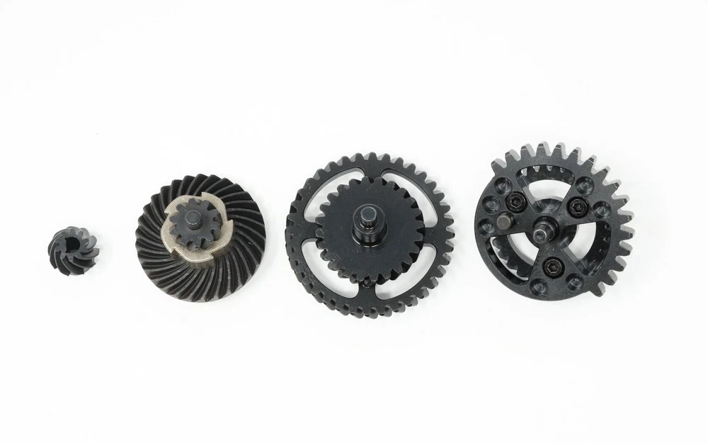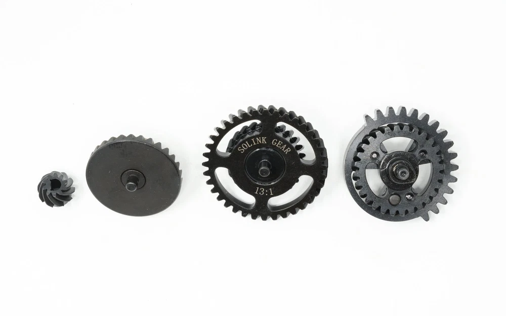 Solink Airsoft Helical Hollowed High Speed Gear Set (13:1) These Solink gears benefit from a complete helical design across the entire gear train. Included is a D-type helical pinion gear, grub screw, and allen key for easier installation. These gears have advantages over traditional spur (straight-cut) gears. The angled teeth engage more gradually, causing them to run more smoothly and quietly. Because of this, these gears may provide a more desirable gear meshing noise when properly shimmed. Additionally, due to their design, these gears may yield an increase in load capacity.The advantages to a lighter weight design include reduced inertia, swifter start speed, and more rapid braking to a stop. Note: these gears can increase axial load on bearings, as opposed to common straight-cut gears which primarily generate radial load. Although high-quality Airsoft bearings can tolerate some axial load and may work just fine, they aren't specifically made for handling significant axial loads. Depending on the configuration, it may be advisable to change to solid bushings on some or all of the gear axles when using these gears. Use of a high-quality adhesive like Loctite 638 or JB Weld is recommended for installing the pinion gear. Manufacturers notes: - Solink High Speed Gear Set for Gearbox- Suitable for Version 2 / 3 Airsoft Electric Gun AEG Gearbox- High strength; not easy to deform.- Increases rate of fire.- CNC machining, enhanced gear to be more durable and bearing stronger spring- New axis design -- improved gear concentricity. - Lower electricity consumption & lower noise. Solink Airsoft Helical Hollowed High Speed Gear Set (13:1) These Solink gears benefit from a complete helical design across the entire gear train. Included is a D-type helical pinion gear, grub screw, and allen key for easier installation. These gears have advantages over traditional spur (straight-cut) gears. The angled teeth engage more gradually, causing them to run more smoothly and quietly. Because of this, these gears may provide a more desirable gear meshing noise when properly shimmed. Additionally, due to their design, these gears may yield an increase in load capacity. The advantages to a lighter weight design include reduced inertia, swifter start speed, and more rapid braking to a stop. Note: these gears can increase axial load on bearings, as opposed to common straight-cut gears which primarily generate radial load. Although high-quality Airsoft bearings can tolerate some axial load and may work just fine, they aren't specifically made for handling significant axial loads. Depending on the configuration, it may be advisable to change to solid bushings on some or all of the gear axles when using these gears. Use of a high-quality adhesive like Loctite 638 or JB Weld is recommended for installing the pinion gear. Manufacturers notes: - Solink High Speed Gear Set for Gearbox - Suitable for Version 2 / 3 Airsoft Electric Gun AEG Gearbox - High strength; not easy to deform. - Increases rate of fire. - CNC machining, enhanced gear to be more durable and bearing stronger spring - New axis design -- improved gear concentricity. - Lower electricity consumption & lower noise. × × × Buy now and save! Shipping info Click the Shipping & Payments tab above the listing description for more info Click the Shipping & Payments tab above the listing description for more info! Additional delivery notes PICK UP OPTION Sorry, our items are NOT available for pick-up. PAYMENT Immediate payment is required upon selecting "Buy It Now" or upon checking out through the cart. We accept payment via U.S. PayPal accounts and all Major Credit Cards, Debit Cards & Google Pay. We are legally required to collect sales tax in those states and localities where we maintain a physical presence (nexus). The applicable amount of sales tax charged to an order will be calculated based on the shipment destination's state and local sales tax laws. Thank you for shopping with us on eBay! Additional Information No additional information at this time Ask seller a question You might also like 1/32" Airsoft 70D Die Cut Neoprene Buffer ASG Airsoft Ultimate 28TPA CNC Long Motor ASG Airsoft Ultimate 16TPA CNC Short Motor ASG Airsoft Infinity Boost 40K RPM 14TPA Short Motor Contact To contact our Customer Service Team, simply click the button here and our Customer Service team will be happy to assist. Ask seller a question © BRILL ARMORY Shipping & Payments Click the Shipping & Payments tab above the listing description for more info Payment Accepted Payment Methods Immediate payment is required upon selecting "Buy It Now" or upon checking out through the cart. We accept payment via U.S. PayPal accounts and all Major Credit Cards, Debit Cards & Google Pay. We are legally required to collect sales tax in those states and localities where we maintain a physical presence (nexus). The applicable amount of sales tax charged to an order will be calculated based on the shipment destination's state and local sales tax laws. Thank you for shopping with us on eBay! Returns Returns are accepted Items must be returned within 30 days of the auction ending Buyer will pay for return shipping. eBay integration by