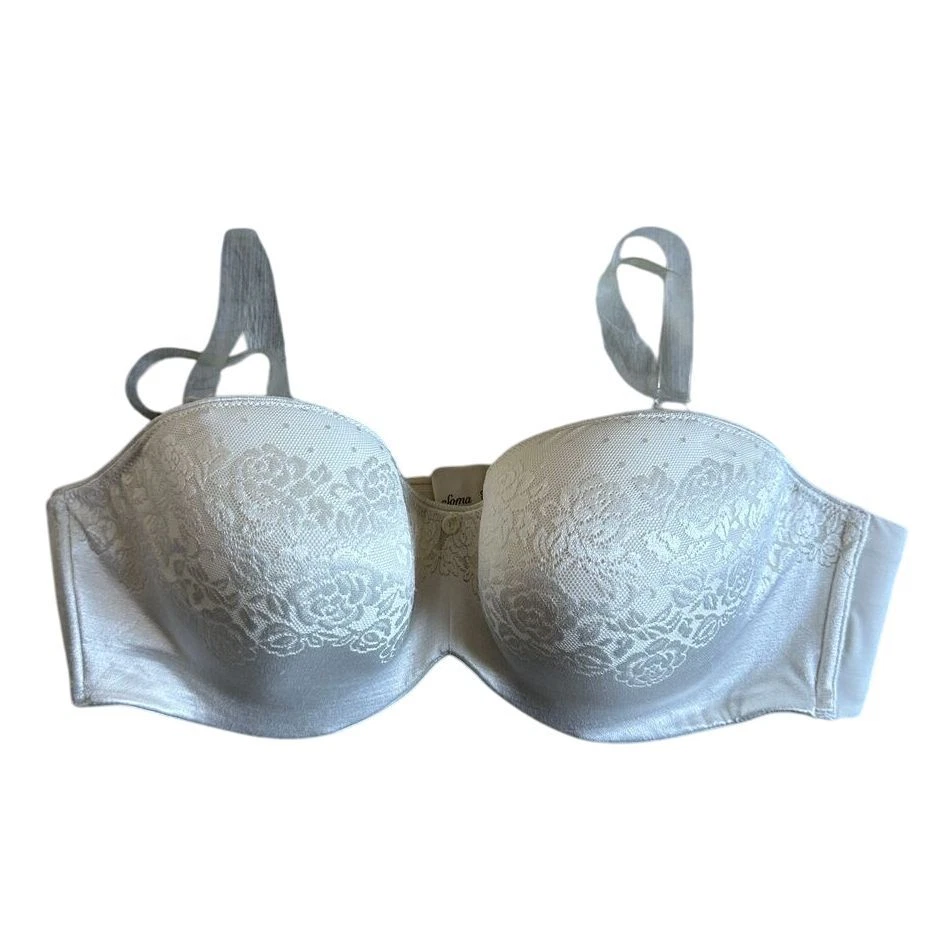 Soma Stunning Support Strapless Bra Womens 40C Multi Way Adjustable White Floral Previously loved but in good condition. Sold out online. Comes with clear straps. See photos. Comes from smoke free and pet friendly home. Stunning Support offers the lift and support you need with the beauty you deserve. Gorgeous strapless bra that can be worn as a multi way bra with exclusive 3-Zone Support lifts, shapes and smooths you. Fully adjustable and removable matching straps. Wear strapless, halter, crisscross for racerback styling, center halter, traditional and more. Smooth and beautifully engineered lace does not show under clothing. Contour foam cups support and are totally seamless. Underwire. Wide super soft and powerful elastic with silicon. Stay put band. Cushioned hook and eye closure. 86% nylon, 14% spandex. Hand wash, cold. Imported.