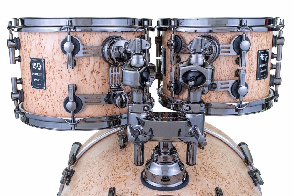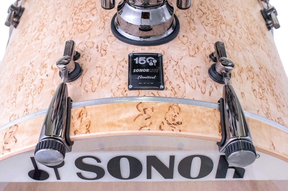 THE DRUM SHOP Portland, Maine Item: Sonor 150th Anniversary Sonorlite Birch Drum Set - Authentic Replica of the 6mm/7mm Sonorlite Series Birch Shell - Scandinavian Birch Inner and Outer Veneer - Semi Gloss Lacquer Finish - Ruthenium Plated Hardware - Slotted Tension Rods - Contemporary Sonor Lugs w/ TuneSafe - Made-in-Germany Die Cast Snare Drum Hoops - Dual-Glide Snare Strainer - DTH 675 MC B Double Tom Holder Included - Individually Numbered Badges on All Drums - Welcome Package w/ Individually Numbered Certificate of Authenticity Included - Limited to 50 Worldwide (12 in USA) Sizes: - 22x16 Bass Drum w/ Mount - 10x7 Tom - 12x8 Tom - 14x13 Floor Tom - 16x15 Floor Tom - 14x7.25 Snare Drum Info: The original SONORLITE was introduced in 1983 and derived from the light shell variant of the SONOR Signature Series. Therefore, sonic and technological perfection were considered equally important, both for SONORLITE and SONOR Signature. Yet, the use of a significantly thinner and lighter shell with an equally strong shell construction in addition to slightly shallower drum depths granted SONORLITE far superior practicality compared to the heavy SONOR Signatures. Thus, it became the ultimate premium drum set for the working musician of its time. The original SONORLITE used two different shell constructions. Bass drums and snare drums used a 12-ply (7mm) shell, whereas toms and floor toms used a 9-ply (6mm) construction. All shells were made from selected Finnish birch which was used because of its similar mechanical qualities compared to German beech, however at a much lower weight. The result was a mechanically strong and light shell that allowed for unobstructed drum head vibration, resulting in a pure, full and open tone with lots of resonance. The 150th Anniversary SONORLITE Shell Sets are more than just a reissue of the original from the 1980s. They are a tribute which merge tradition and innovation by combining a replica of the SONORLITE shell with contemporary state-of-the-art shell hardware features. To faithfully recreate the iconic SONORLITE shell, 9 respectively 12 plies of selected Finnish birch veneer are cross-laminated. For the outer and inner ply of the shells, stunningly grained Scandinavian Birch (Betula alba) is used. Originally introduced with the SONORLITES, this veneer has remained one of the most iconic SONOR finishes to date. To emphasize the naturally grown beauty of the Scandinavian Birch veneer and in homage to the original, all shells are finished with clear semi gloss lacquer, which is applied in multiple lacquering and polishing stages by hand.All hardware on the drums is plated with Ruthenium to offset the blonde color of the veneer whilst alsoadding a luxurious touch to the understated elegance and simplicity of the original. Finally, all drums receive individually numbered commemorative badges to certify the uniqueness of each 150th Anniversary SONORLITE Shell Set. This listing is for the drum shell pack only. The cymbals & hardware in photos sold separately. Condition: This is a brand new kit in its original factory-sealed boxes. WE ARE AN AUTHORIZED SONOR DEALER AND HAVE MANY OTHER SONOR ITEMS IN STOCK! Feel free to contact us with any questions you may have! Buyers Buyers with zero feedback please contact us before bidding. (We reserve the right to cancel any purchases by buyers with zero feedback if we are not contacted prior to purchase .) We do our best to describe all of our items accurately, but if you have more questions please feel free to contact us. Maine residents please add 5.5%sales tax! Thank you We are an authorized FIVE STAR SHOP! Our Goal is to give you the best customer service and best price out there! CONTACT US Domestic shippi ng Free Shipping only applies to shipments within the continental United States. If you live in Hawaii, Alaska, or Puerto Rico, additional shipping charges will apply. We ship out Monday thru Friday via UPS and ship Monday thru Saturday with USPS. All shipments are sent No Signature Required. Please contact us if you need a signature. Fees may apply* We insure all of our packages! Most cases we will ship your item out the same day you buy or the next day. Some items take more time to pack and make sure all is safe and sound. Some items can take up to 4 days to pack well. Returns Before returning an item please contact us. We accept returns within 14 days of you receiving your item. Items must be unused and in original packaging unless otherwise discussed with the drum shop Buyer pays return shipping and if the auction had free shipping then that shipping fee will be deducted from the total returned amount. Other restocking fees may apply. We do NOT except returns on used items or custom or special orders. THE DRUM SHOP 965 Forest Ave Portland, ME 04103