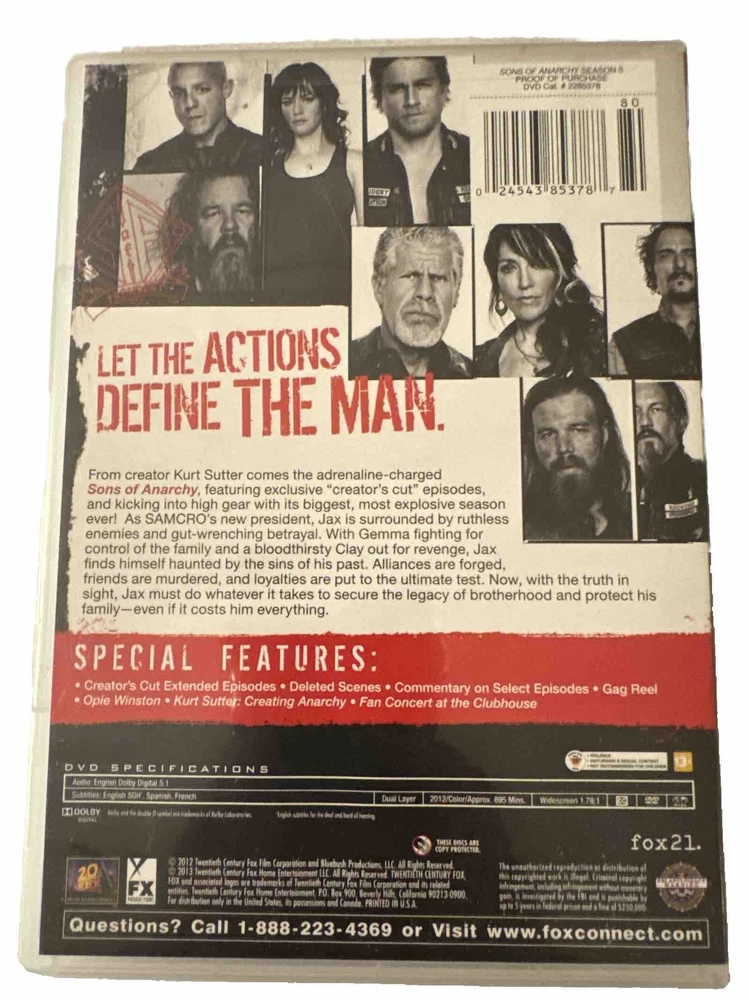 This Sons of Anarchy: Season Five DVD is a must-have for fans of the popular TV show. Get ready to see the SAMCRO gang navigate through new challenges and betrayals in this action-packed season. The DVD comes in the format of a standard DVD and is perfect for adding to your collection of movies and TV shows. Get ready to immerse yourself in the world of Sons of Anarchy and discover the secrets that lie within.