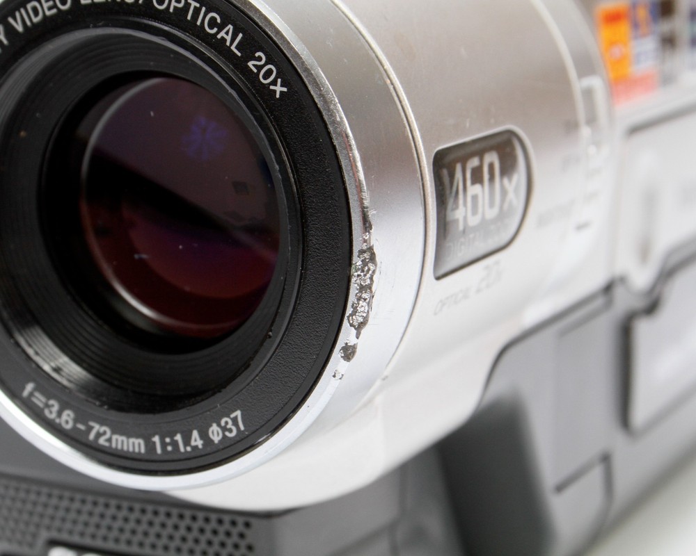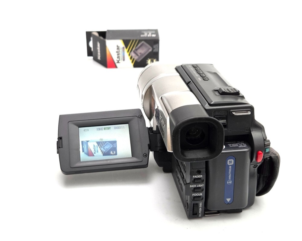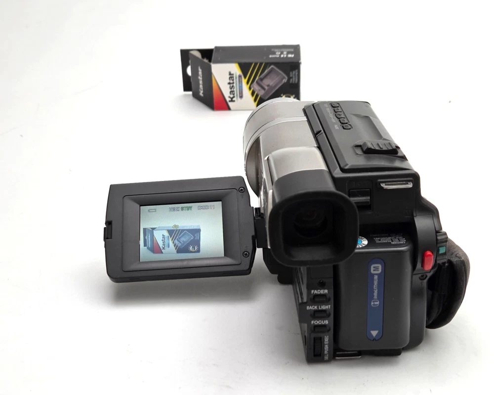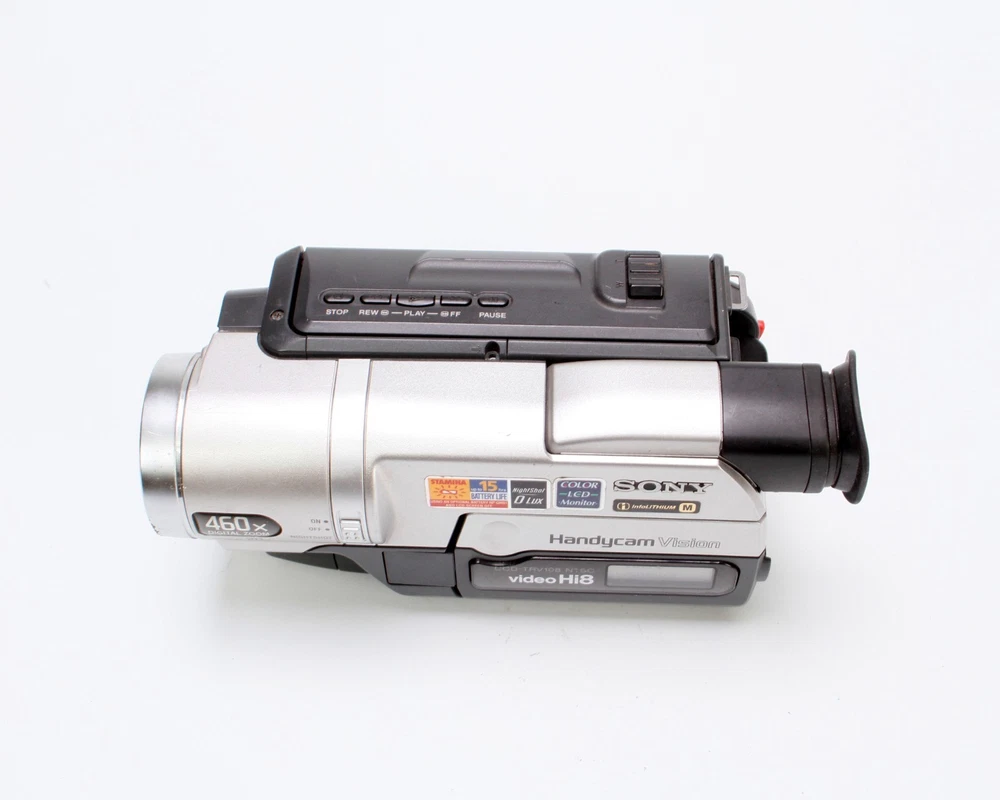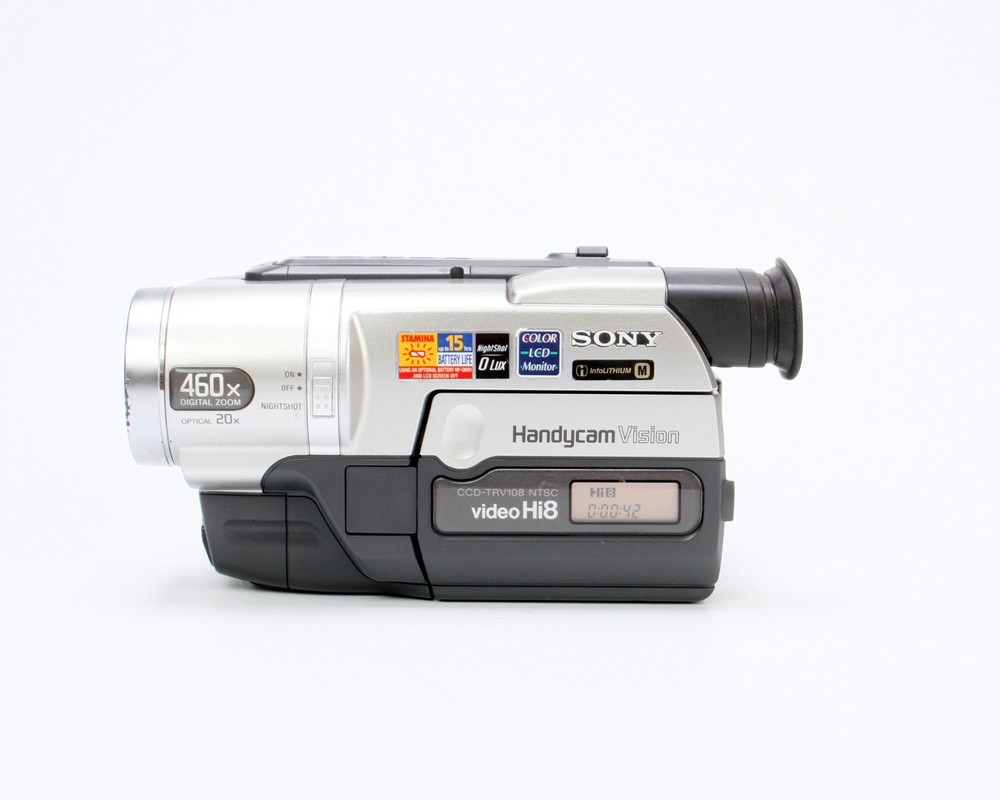 Camera Has Visible Cosmetic Wear On Front Bezel - Photo #4 Sony CCD-TRV108 Handycam Hi8 Camcorder (Silver) Used Camcorder Exhibiting Wear from Normal Use, LCD Screen Looks Good, Lens Glass is Undamaged All Camcorder Functions Tested Without Issue and Fast One Day Order Processing for Speedy Delivery Sale Includes: Camcorder, Aftermarket Battery & Charger, New Hi8 Tape Photos of Actual Items, Contact Me With Questions