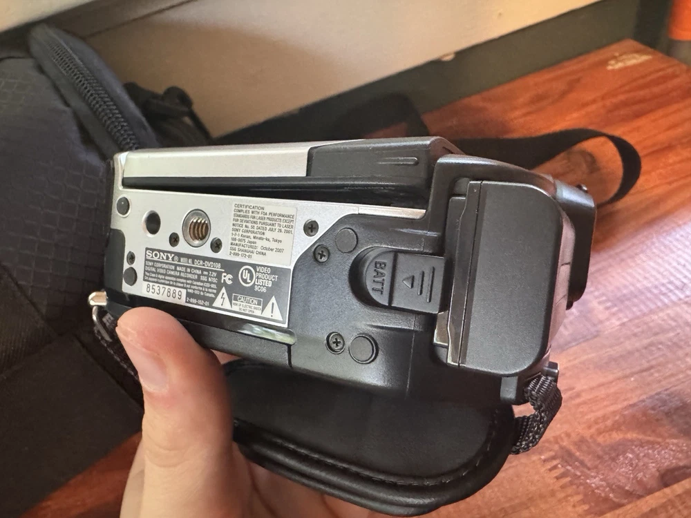 The Sony 40x HandyCam DCR-DVD108 Camcorder is a compact and efficient handheld camcorder designed for Sony users. With a sleek silver design and advanced features like digital zoom up to 2000x, this camcorder from the Sony Handycam series is perfect for capturing memories in standard definition. It comes with a convenient Mini DVD for recording and a built-in microphone for clear audio. The battery is having some trouble holding a charge and likely needs to be replaced. They are about ten bucks. Charger is included. Priced accordingly. The camcorder also includes an LCD screen and touch screen for easy navigation, as well as connectivity through USB for quick sharing of your videos. LCD screen stays slightly open and does not press flush against the camera. Screen works perfectly. Perfect for on-the-go recording, this Sony camcorder is a reliable choice for any photography or video enthusiast.