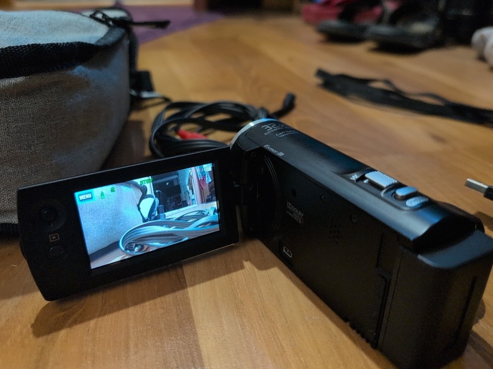This camcorder has only been used about 3 times. it was a gift to me and I just don't take pics. All orinal cables included.