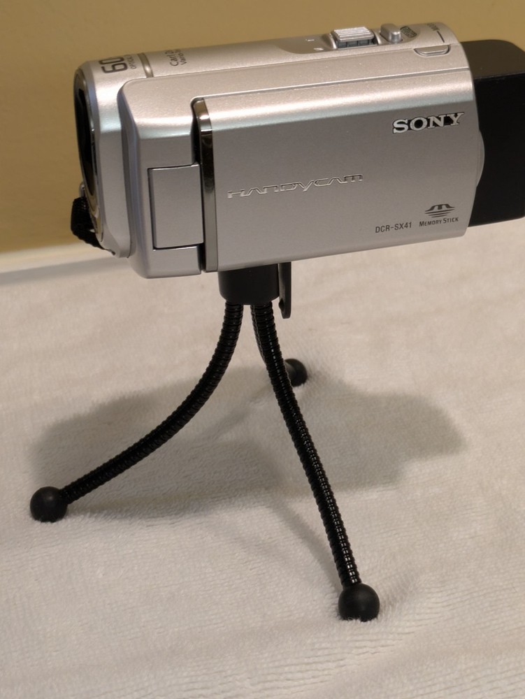 Your purchase will come with the following: 1 Sony Handycam DCR-SX41 1 charging cord w/adapter (for 120 wall outlet) 1 USB to mini usb cable 2 batteries (larger one and brand new smaller one) 1 plug in battery charger (brand new) 1 AV out cable 1 tripod There is no manual or box/case for this unit.
