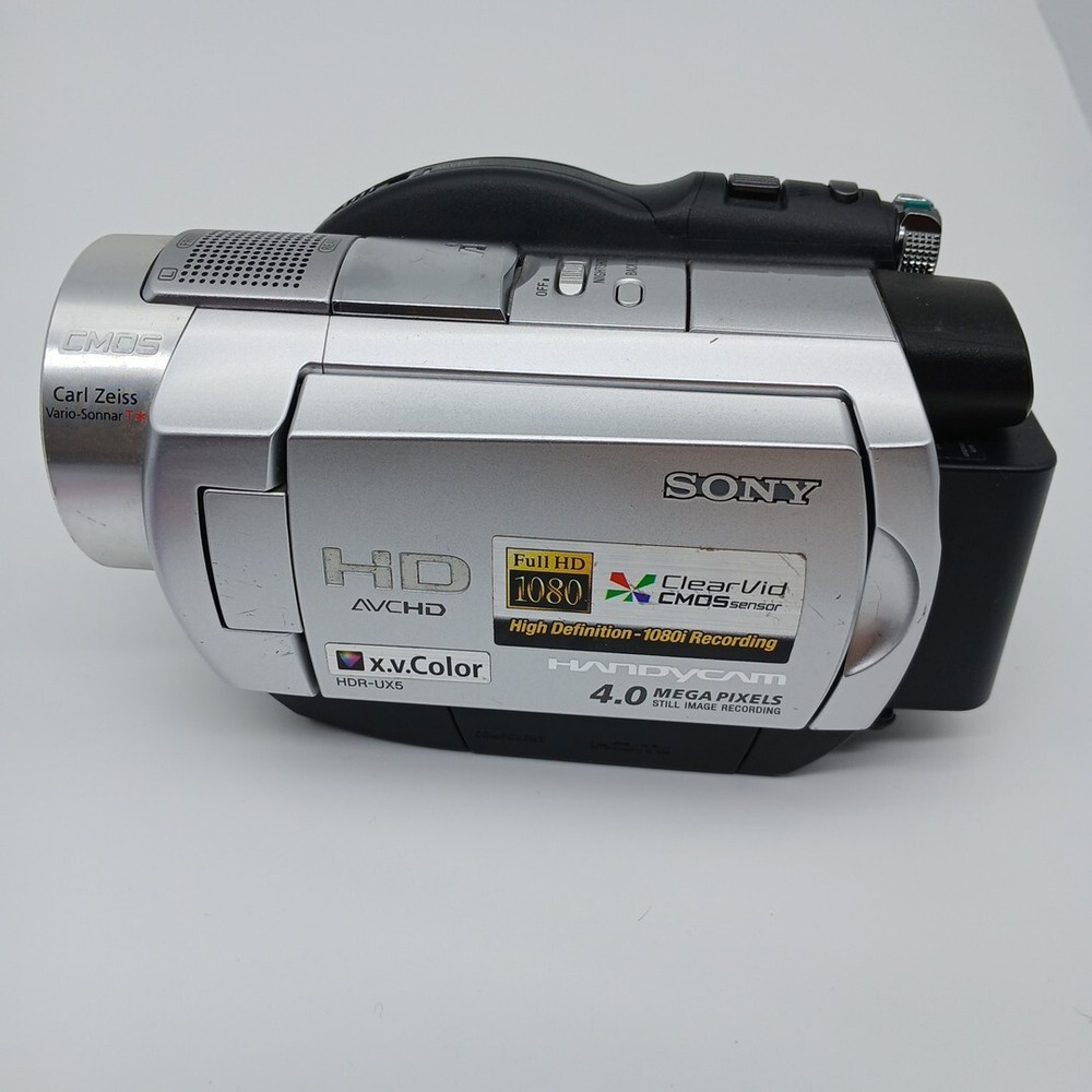 Brand:SonyColor:SilverType:CamcorderDigital Zoom:80xUPC:Does not applyRecording Definition:High DefinitionStorage Type:Removable (Card/Disc/Tape)Media Format:DVDFeatures:Built-in Microphone, LCD Screen, Touch ScreenSeller Notes:“Tested and working. See photos for condition.”Optical Zoom:10xSeries:Sony HandycamCountry/Region of Manufacture:JapanMPN:HDR-UX5gtin13:Does not applyModel:Sony HDR-UX5
