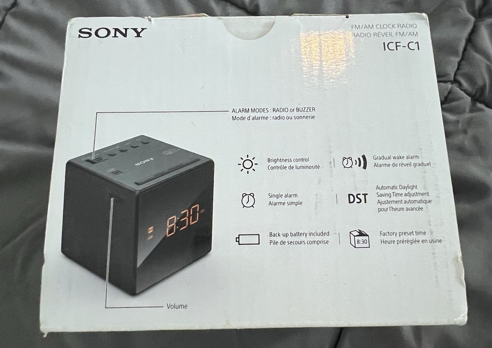 The versatile Sony Radio Alarm Clock is programmable, allowing you to awaken you quickly with a buzzer or more gently with the gradual awake feature. The latter option can help you wake up with soft music that slowly increases in volume until you turn it off or hit the snooze button. You can set the AM/FM radio to your preferred station, so the first thing you can hear in the morning might be your favorite music. When you press the snooze button, the alarm goes off again for you 10 minutes later. You can then repeat the snooze for up to an hour. In addition, this alarm clock has a digital face that makes reading the time on the clock easy. With its cool, contemporary design and smooth, black exterior, the Sony AM/FM radio alarm clock blends in perfectly with any bedroom decor. Measuring at 4 inches high by 4 inches wide, it is ideal for dormitories and small bedrooms. In addition, it weighs fewer than 2 pounds, making it perfect for your travels. Just toss it into your bag and take it along with you on your trips. A battery backup feature has you covered during nighttime power outages. In addition, you don’t have to worry about setting the clock back one hour in the fall or one hour ahead in the springtime. This Sony AM/FM radio automatically adjusts itself during daylight saving time changes to make your life easier. An additional feature is a built-in, easy-to-operate analog AM/FM tuner that makes finding your favorite station quick and easy. You can even enjoy falling asleep and waking up to your favorite music using the clock’s programmable sleep timer. The Sony ICF-C1 Alarm Clock is a great option for anyone who has vision difficulties. You can appreciate the clock’s backlit LCD face that displays large, amber-colored numbers. An adjustable brightness control allows you to dim or brighten the display as needed with just the press of a button. Brightness settings include high, medium, and low. This item includes one lithium battery. To begin using the Sony Clock Radio, all you have to do is program the clock to your time zone and plug it in. It then automatically detects the local time for you, so you can count on it being accurate no matter where you are. You can choose from five different time zones: Atlantic, Eastern, Central, Mountain, and Pacific. This product has a speaker output of 100 mW and 8 ohms for excellent audio quality. Its frequency range for FM radio is 87.5 MHz to 108 MHz, 0.1 MHz Steps, and its frequency range for AM radio is from 530 kHz to 1710 kHz, 10 kHz Steps. With its sleek look and compact size, this Sony Clock Radio looks great anywhere you put it in your home. Get one of these clocks and ensure a great start to each and every day.