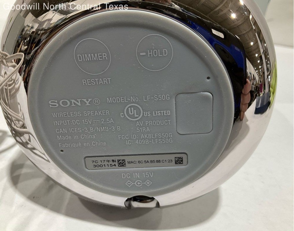 sony Sony LF-S50G Wireless Speaker Brand: sony Model: Sony LF-S50G Wireless Speaker Functionality: Condition: Good - shows some sign of wear ***Condition Disclaimer*** We strive to provide photographs that accurately represent each item we sell. ***Condition Disclaimer*** This is a USED item donated to Goodwill North Central Texas. Please see images for further detail. We strive to provide photographs that accurately represent each item we sell. We do our best to test all electronics, but with many items testing usually does not go beyond verifying whether it powers on or not unless stated otherwise in the descriptions. Full functionality of an item cannot be guaranteed unless otherwise stated in the description. Although we describe our items to the best of our ability, we are not experts in any field. Know that you are buying with this in mind.