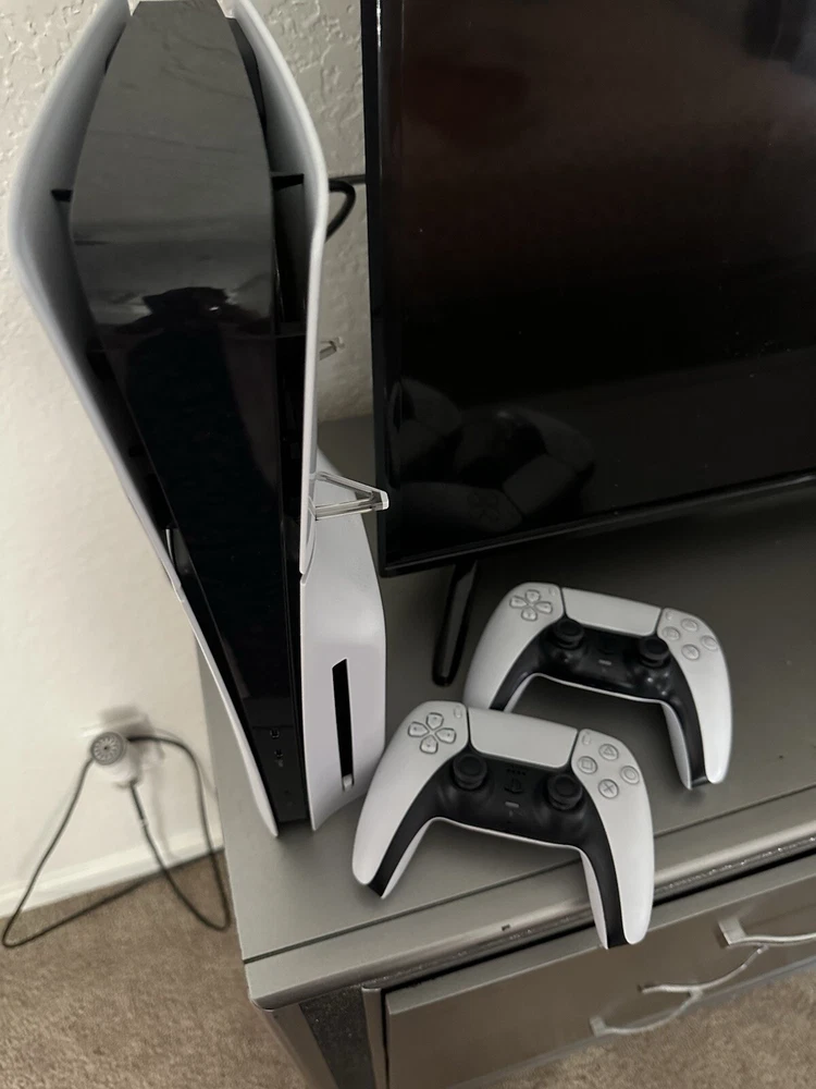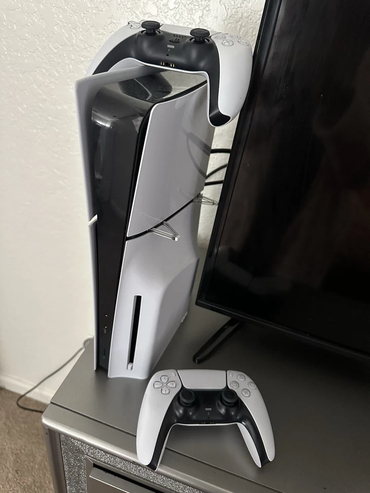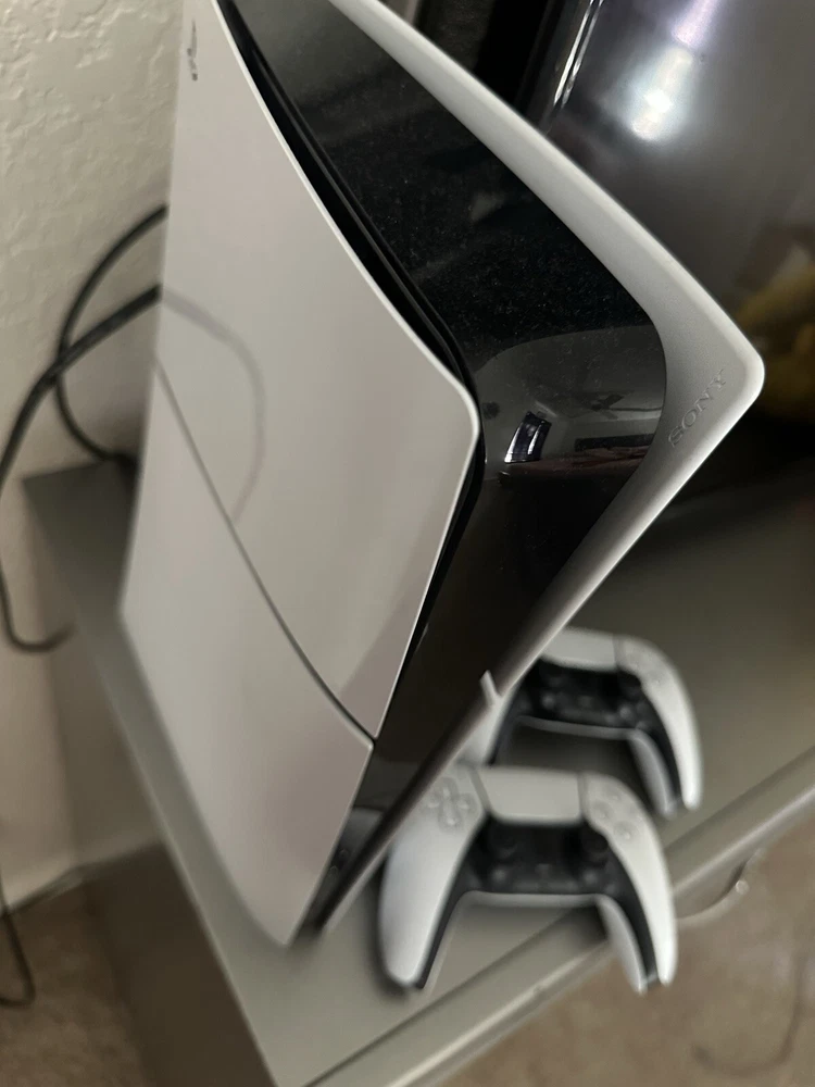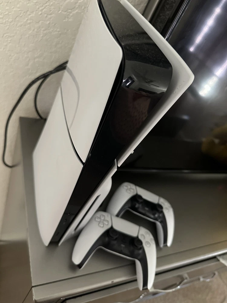 Up for auction is a PlayStation 5 disc-based system that I bought from Walmart back in the days when you actually had to be lucky to buy one. Remember that? This was the system that came with Horizon: Zero Dawn, even though I didn't order it. I guess it was all they had. I don't think I have any way to transfer that to you, so the system comes as is as far as games (i.e. with none). Anyway, this unit is in perfect condition. Clean and runs extremely well. When I first bought it, I also picked up the Midnight Black console covers and they are attached. I threw out the original white ones. I'm putting it up for sale because I just bought a PS5 Pro. Included: * Playstation 5 Console w/ power cable and stand * 1x DualSense controller (black) * 1x DualSense controller (white) * USB-C charging cable * HDMI cable Please contact me if you have any questions and thank you for bidding.
