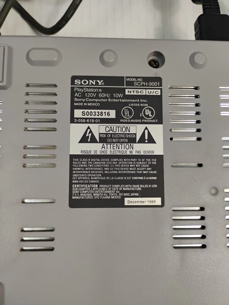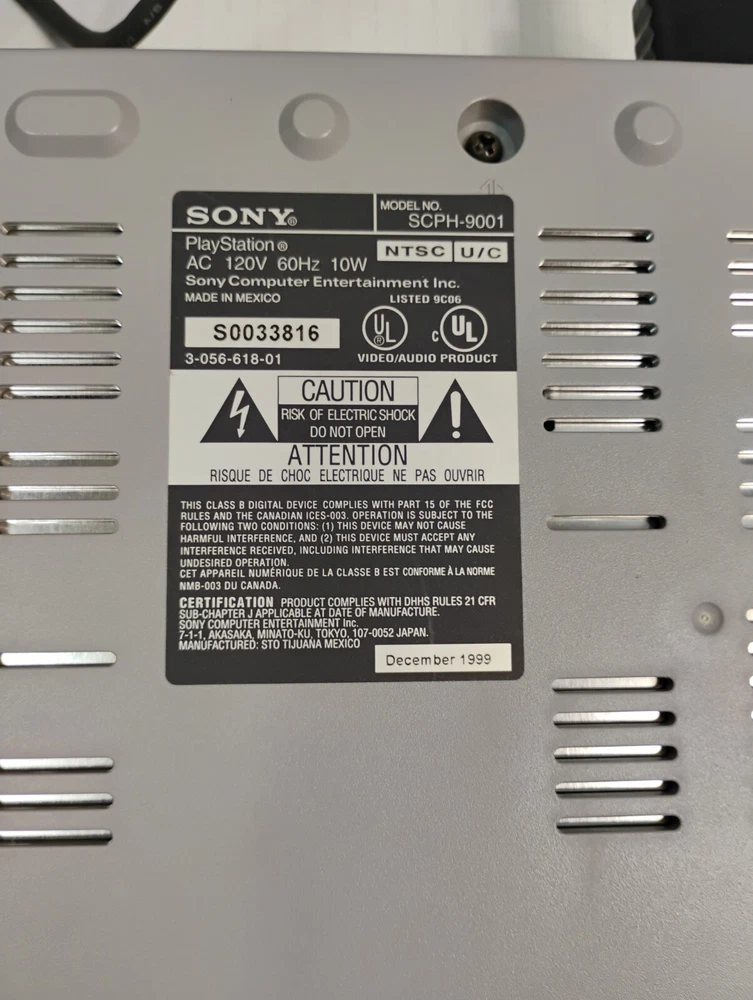 Color:GrayBrand:SonyType:Home ConsoleConnectivity:Composite RCAModel:Sony PlayStation 1Region Code:NTSC-U/C (US/Canada)MPN:SCPH-9001Platform:Sony PlayStation 1Year Manufactured:1999