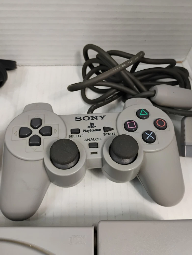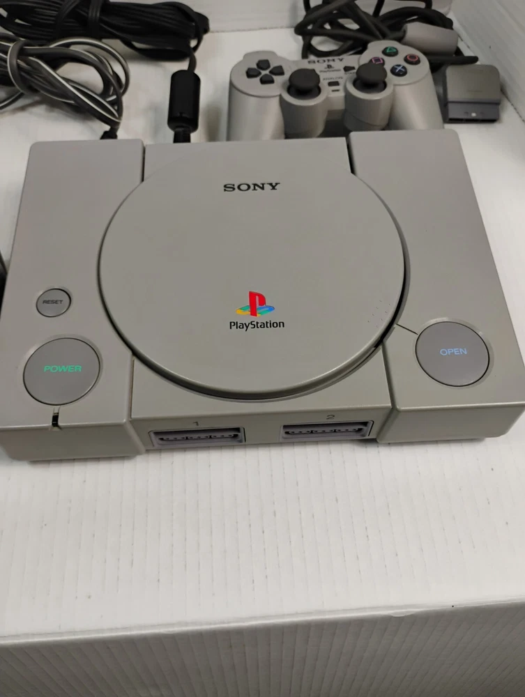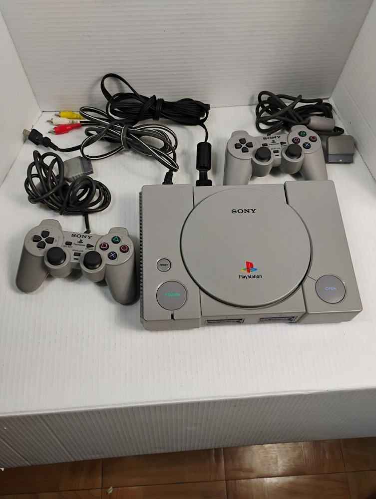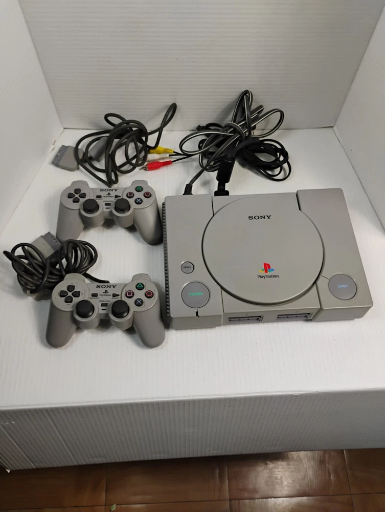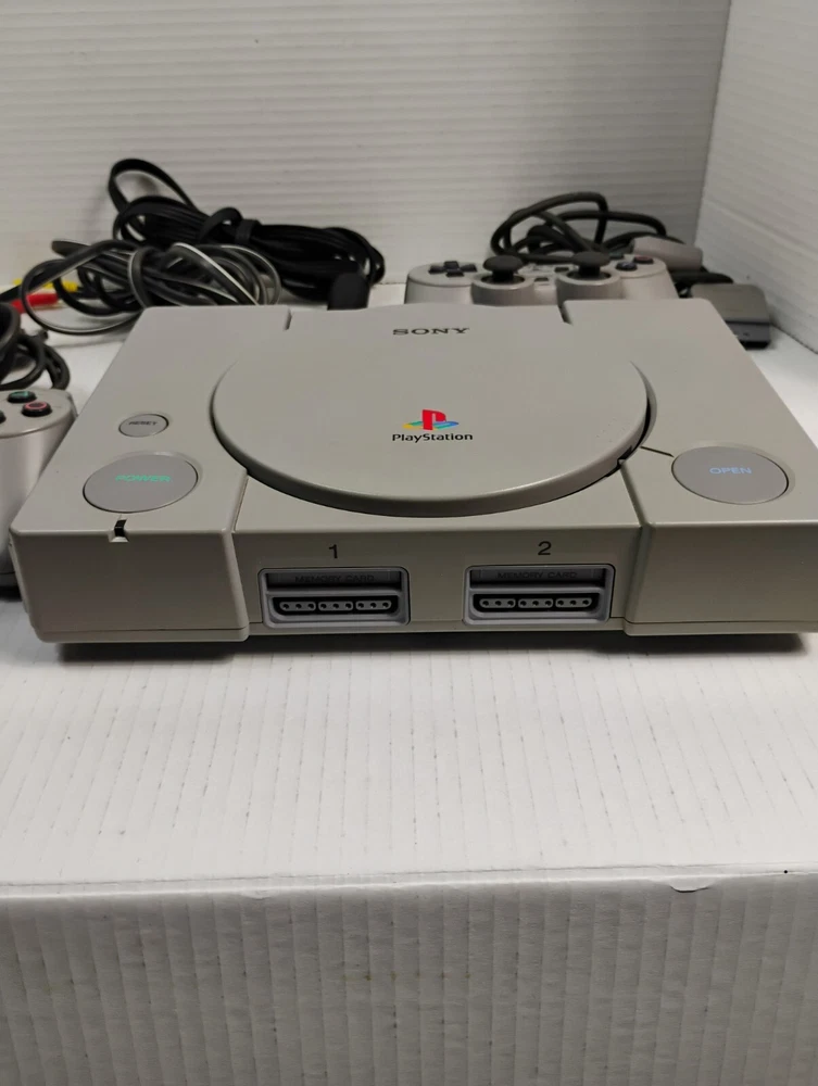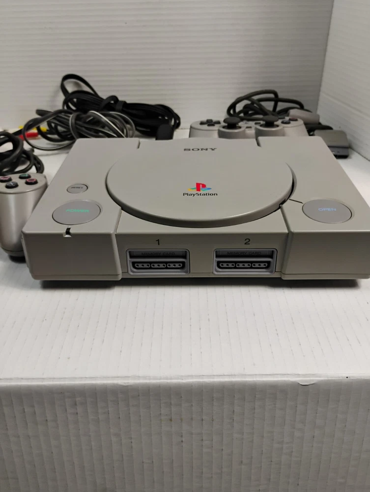 Sony PlayStation 1 Console with Two Controllers and Original Cables