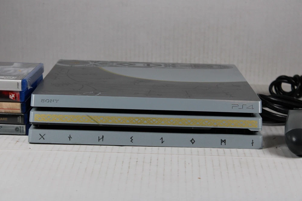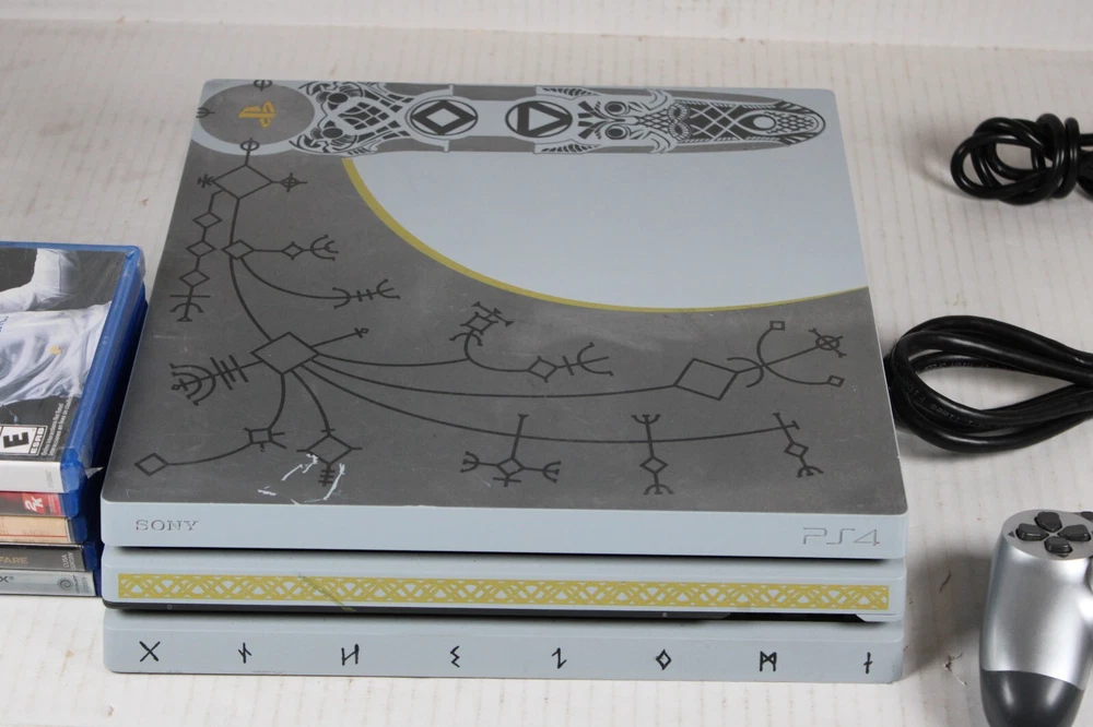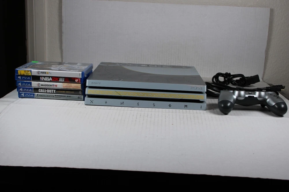Listing Information: For the Sony Playstation 4 (PS4) Title: Sony PlayStation 4 Pro PS4 1TB God of War Limited Edition Console Gaming System W/ 5 games Condition: Authentic, includes console, OEM controller, HDMI cable, power cable, and 5 boxed games. The console has some minor shelf wear (see pics), controller is in great condition, console has been tested, and works great. Preowned and ready for sale Please see pics as they are a part of the listing and message me with any questions >>>>>Vintage.NM.Olsk<<<<<