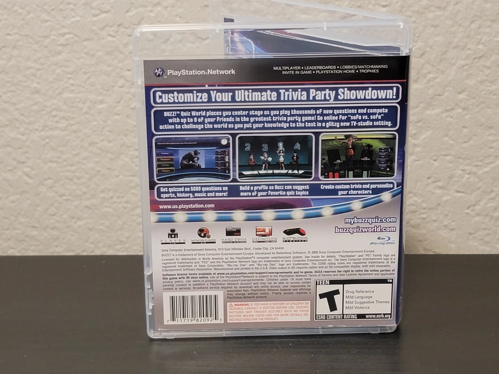 Sony Playstation 3 PS3 Buzz Quiz World TV Game CIB Complete w/ Manual Game disc is in near mint to mint condition. Manual is in mint condition. Case has a like new finish. Overall this game was well taken care of.