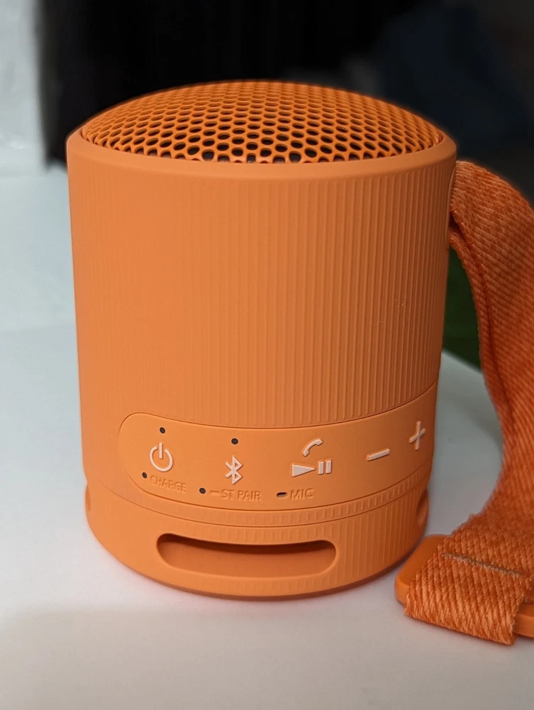 Sony XB100 Compact Bluetooth Wireless Speaker | Orange New Condition - Open Box Include the Speaker, USB Cable and Original Box Enjoy powerful, clear sound, with a deep bass Sound Diffusion Processor expands sound far and wide Waterproof and dustproof (IP67 rated) Up to 16 hours of battery life with indicator Compact portable design with versatile strap included Compatible with a second speaker for stereo sound Connect and stream music easily with Bluetooth Crystal-clear hands-free calling Microphone w/ echo cancelling technology USB Type-C port Free Shipping