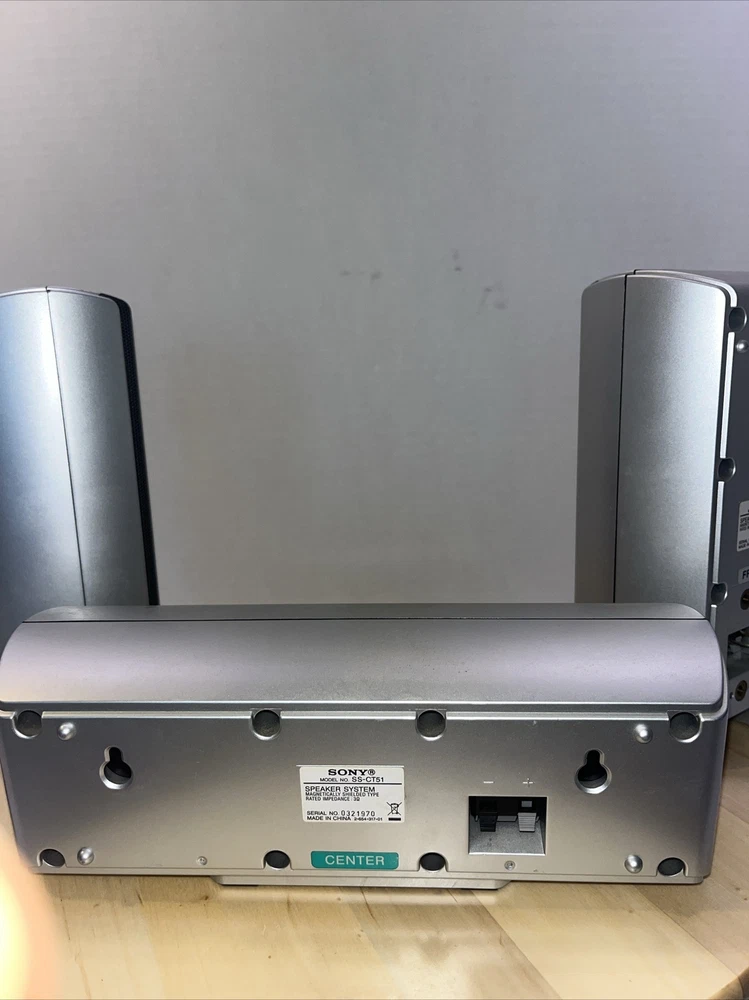 Immerse yourself in high-quality audio with this three-speaker Sony surround sound system. The set includes two Sony SS-TS52 speakers for the right and left channels, as well as an SS-CT51 center speaker, delivering crisp and clear sound for an unparalleled listening experience. The speakers are rectangular in shape and have a silver finish that complements any home decor. This 5.1 channel system has a total RMS power of 70W and features surround sound formats that enhance your movies, music, and gaming experiences. The speakers are wired and have 3.5mm audio inputs for seamless connectivity. With this Sony surround sound system, you can enjoy an immersive sound experience in your home.
