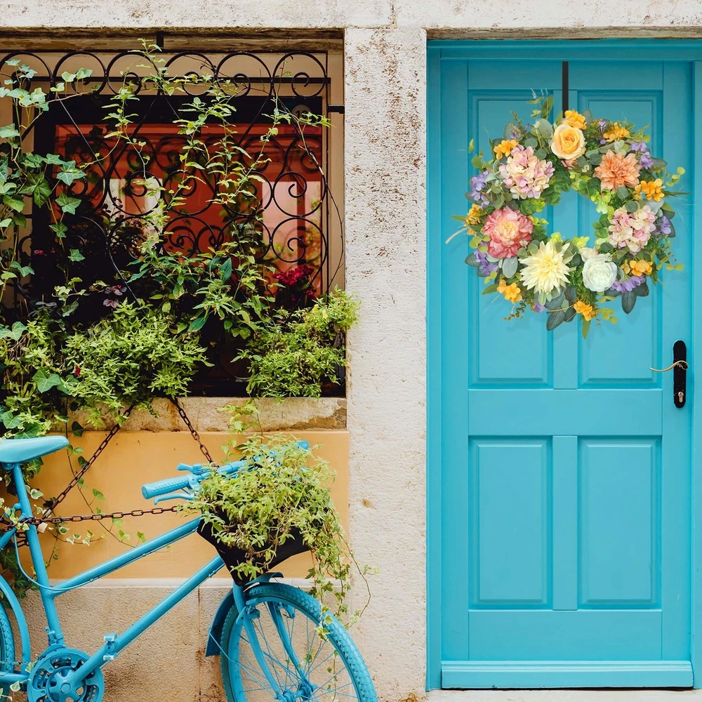 $ 13.4126 Inch Artificial Hydrangea and Eucalyptus Wreath for Front Door Decor