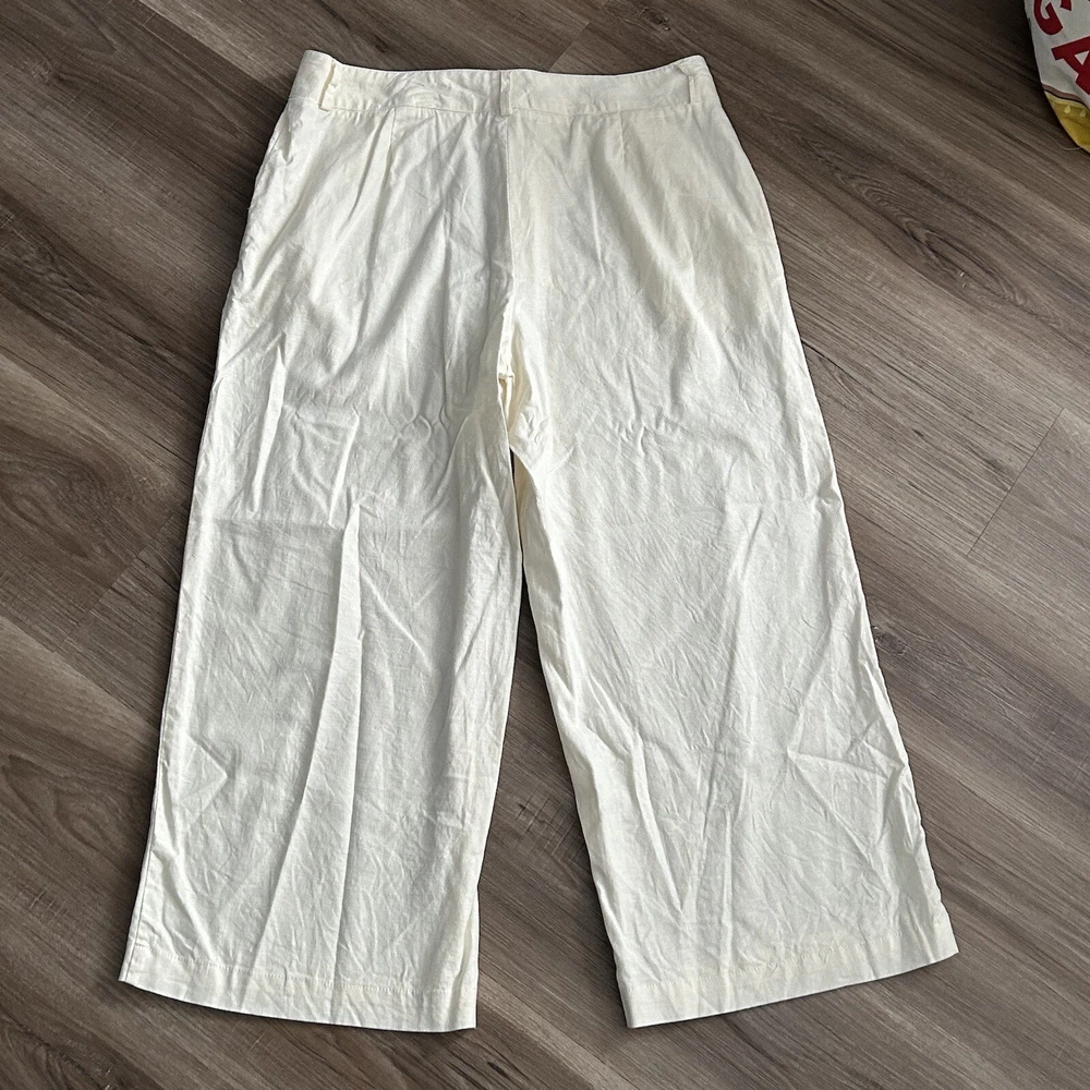 Sophie Max Ivory Linen Blend Straight Leg Crop Pants Women Size 10 in great condition/ has pockets / belt loops/ great for beach and warm vacations Waist 16” across Rise 11” Inseam 24” Approximate measurements All final sale #33 Casual, dressy, vacation, beach, vacation, Summer, boating, nautical cruise